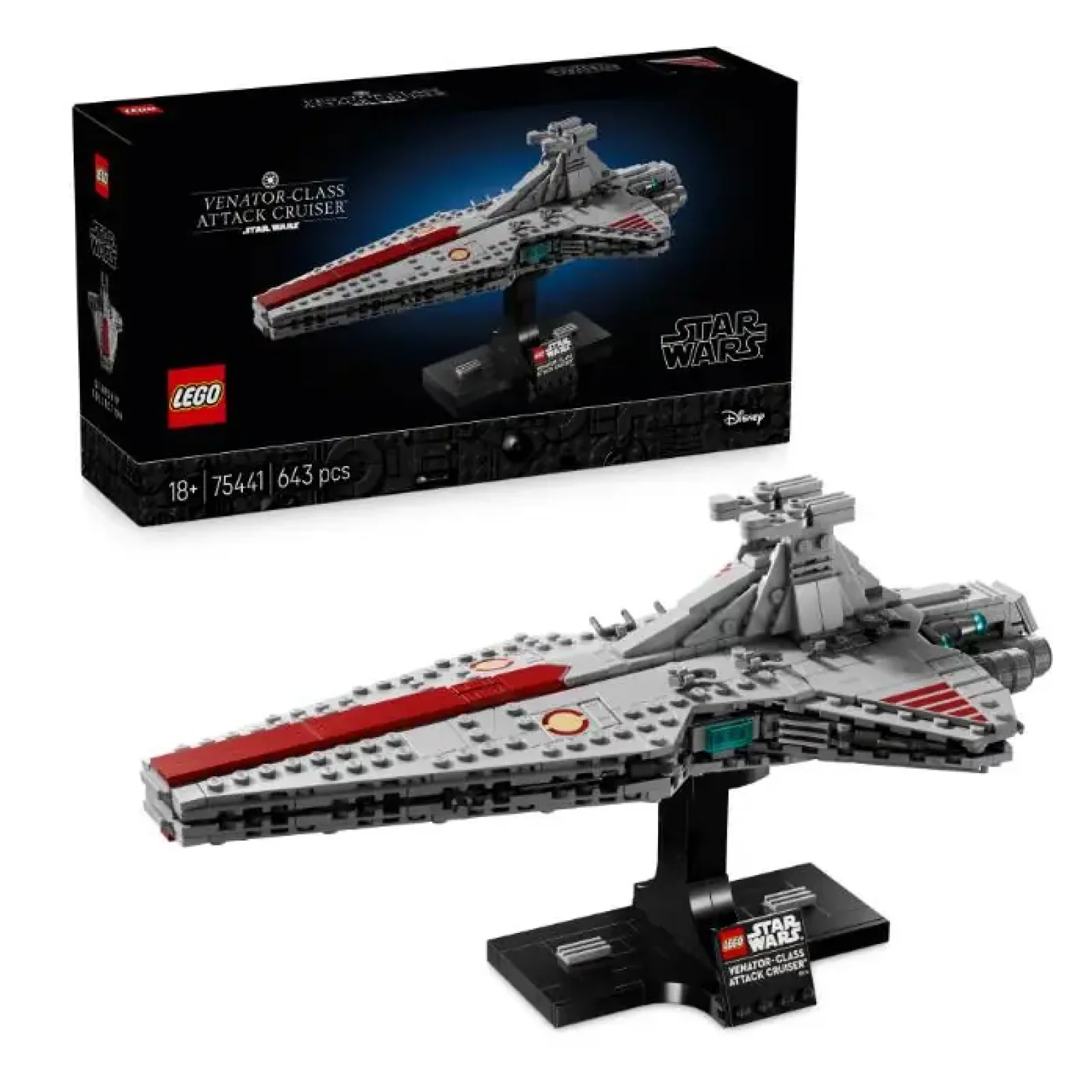 Продемонструйте обтічний дизайн Зоряного крейсера класу «Венатор» за допомогою цього набору для складання моделі зорельота (75441). Використовуйте кубики LEGO®, щоб відтворити характерний силует та автентичні деталі одного з найбільш універсальних зорельотів у флоті Галактичної Республіки. Відтворіть сцени з фільму «Зоряні війни: Помста ситхів», занурюючись у цю складну й цікаву збірку. З гордістю демонструйте приголомшливий крейсер на збірній підставці з іменною табличкою. Цей набір, що входить до Колекції зорельотів LEGO Star Wars™ середнього розміру, стане чудовим подарунком для вас або інших дорослих шанувальників трилогії-приквелу. Насолоджуйтесь удосконаленими техніками будування з додатком LEGO Builder, збільшуючи й обертаючи зображення за допомогою 3D-інструкцій, а також зберігаючи та відстежуючи прогрес. Усе це з додатка! Набір містить 643 деталі.