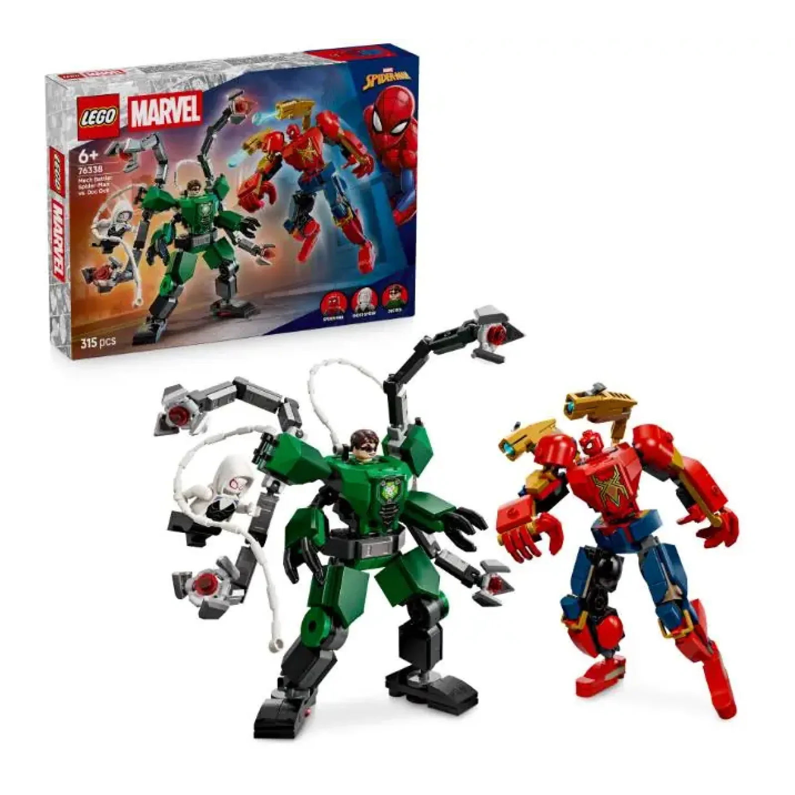 Приєднуйтесь до 2 повністю рухомих роботів для надзвичайних пригод супергероїв із набором «Битва роботів: Людина-павук vs. Доктор Восьминог» (76338) — конструктором для хлопчиків і дівчаток віком від 6 років. Діти можуть ставити 2 роботів у різні пози, щоб оживити пригоди разом із мініфігурками LEGO® ? Marvel: Людина-павук, Павук-привид і Доктор Восьминог. Обидва роботи мають високу рухливість для максимальної динамічності й кабіну, що відкривається, де можна розмістити мініфігурку пілота. Робот Людини-павука виконаний у стилі Залізного Павука та оснащений 2 рухомими шиповими шутерами, що керуються з кнопок. Робот Доктора Восьминога оснащений чотирма повністю рухомими щупальцями. У наборі також є 2 павутинні мотузки, які легко кріпляться до роботів і мініфігурок, а Павук-привид має стропи, які можна прикріпити до тулуба робота Доктора Восьминога. Цей мерч LEGO ? Marvel, присвячений Людині-павуку, стане чудовим подарунком, а завдяки додатку LEGO Builder діти зможуть впевнено будувати, збільшуючи, обертаючи в 3D і відстежуючи прогрес за допомогою цифрових інструкцій. Набір для конструювання містить 315 деталей.