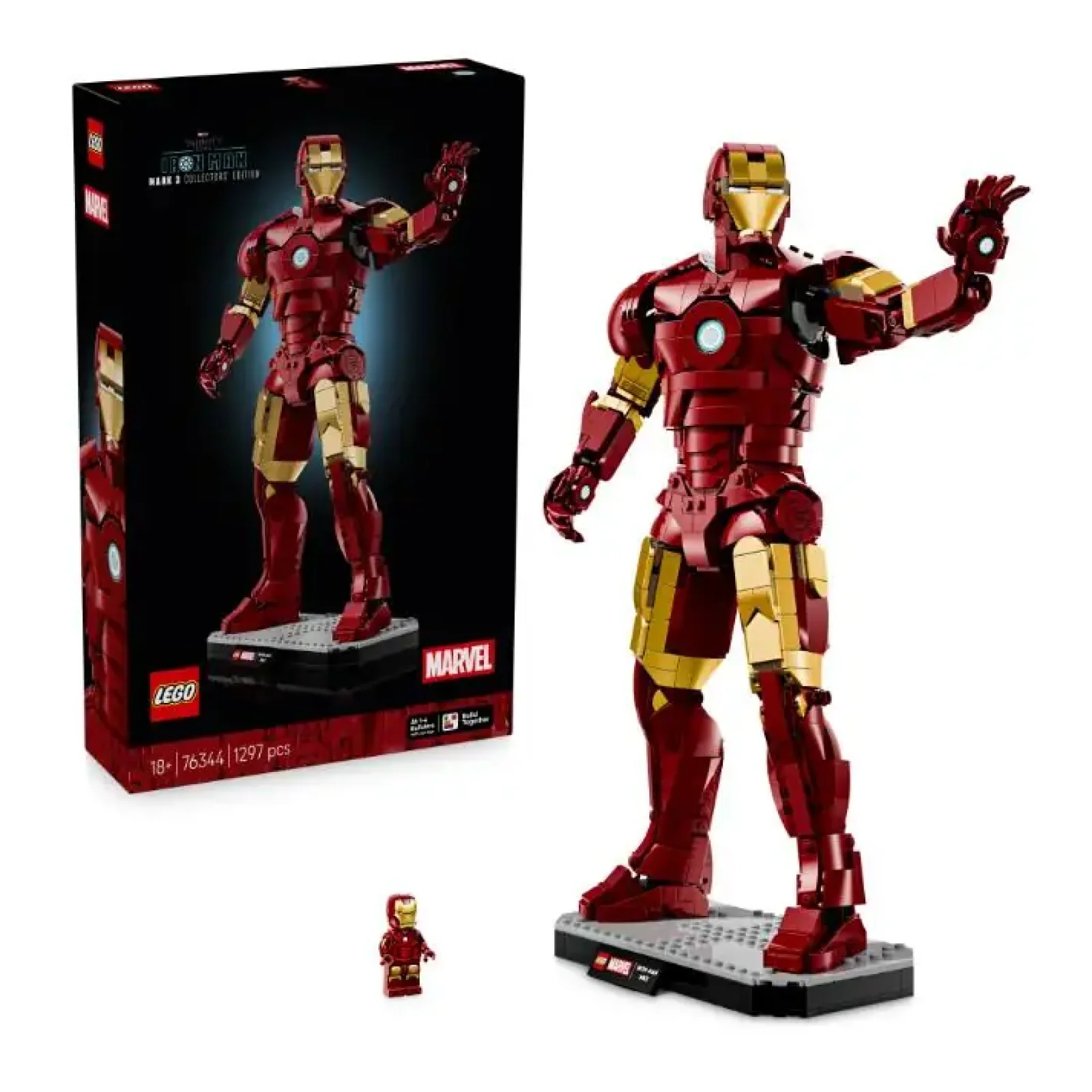 Дорослі шанувальники супергеройських фільмів можуть відтворити образ Залізної Людини з фільмів «Саги нескінченності» студії Marvel із колекційною фігуркою LEGO® ? Marvel Залізна Людина в броні Mark 3. Колекційний набір (76344). Цей неймовірний набір із 1297 деталей має висоту понад 38 см, а відтак є чудовим подарунком на день народження або з будь-якої іншої нагоди для чоловіків, жінок, шанувальників Залізної Людини й любителів LEGO® віком від 18 років. Розміщуйте автентично деталізований костюм Залізна Людина в броні Mark 3 в динамічних позах, змінюючи положення шарнірних з'єднань шиї, талії, плечей, зап'ястків і рук. Фігурка LEGO ? Marvel прикрашена золотистими лакованими елементами та стоїть на міцній підставці з іменною табличкою, створюючи приголомшливий елемент декору в стилі супергероїв. Додатковий бонус: у наборі також є мініфігурка Залізної Людини, готова до бою, в броні Mark 3. Будівельники можуть завантажити додаток LEGO® Builder, щоб разом із друзями й родиною насолоджуватися спільним складанням. Набір для конструювання містить 1297 деталей.