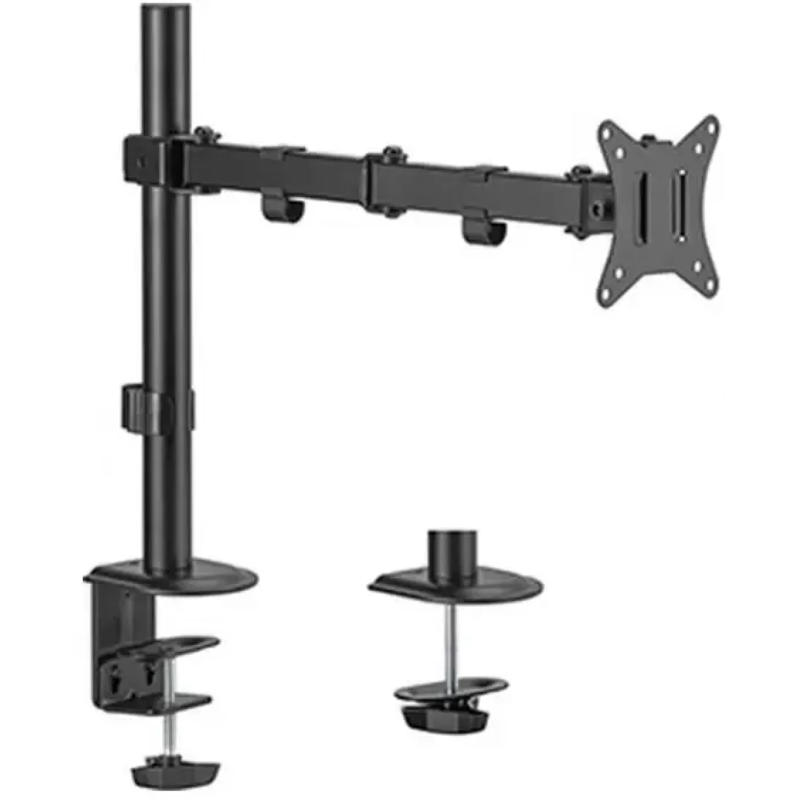 Регулювання по висоті дозволяє підняти екран до оптимального рівня, зменшуючи напругу на шию та спину — ідеально для довгих робочих днів чи геймінгу. Зажим для кабелів тримає дроти в порядку, перетворюючи хаос на стильний сетап. Два способи кріплення — струбцина чи пластина — підходять до будь-якого столу товщиною 10-80 мм.