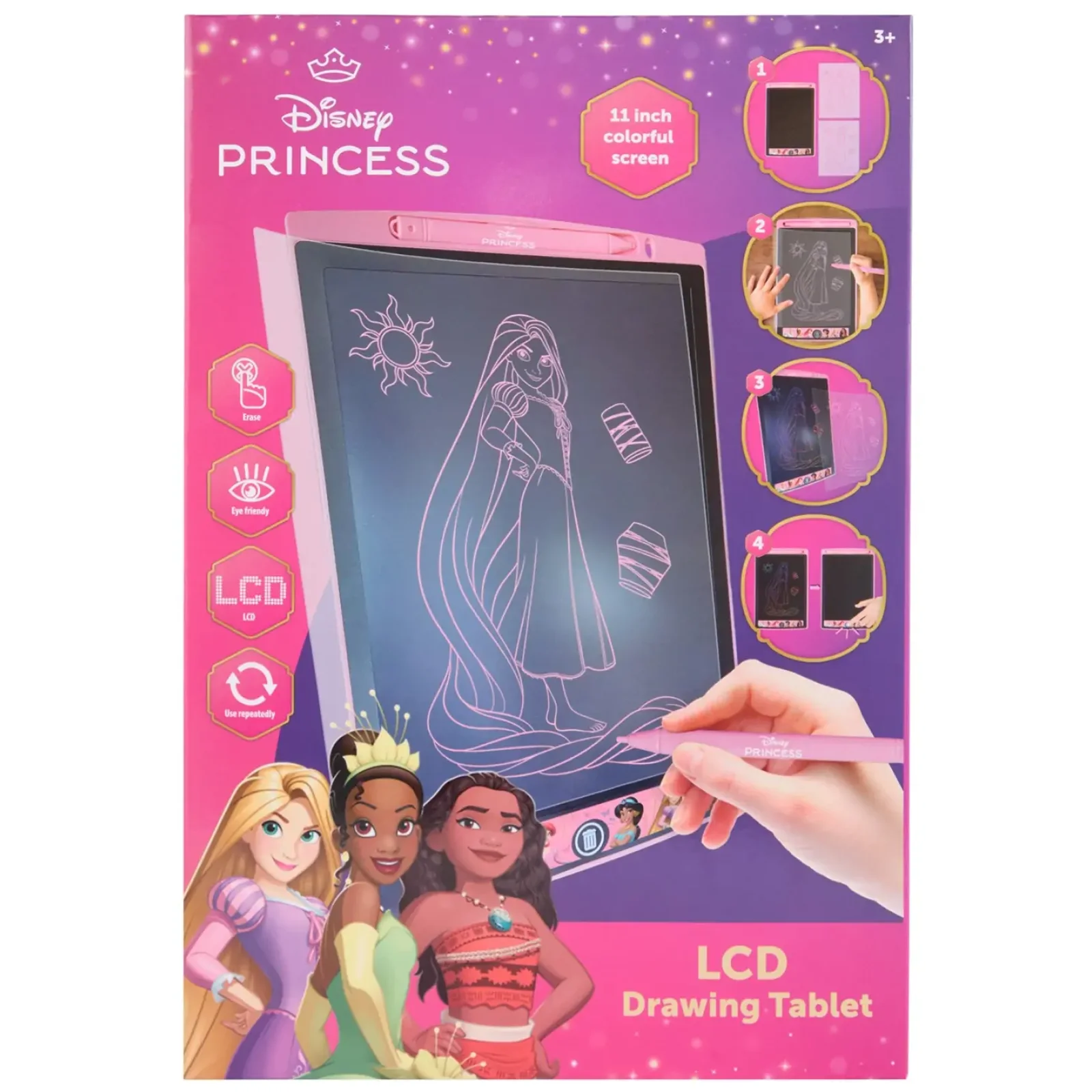 LCD-планшет для рисования 11 дюймов, стилус и 2 трафарета в комплекте. Рекомендуемый возраст: от 3 лет. Питание: 1 батарейка типа CR 2032 (входит в комплект). Материал: пластик. Размер: 29х19.7х1.5 см.