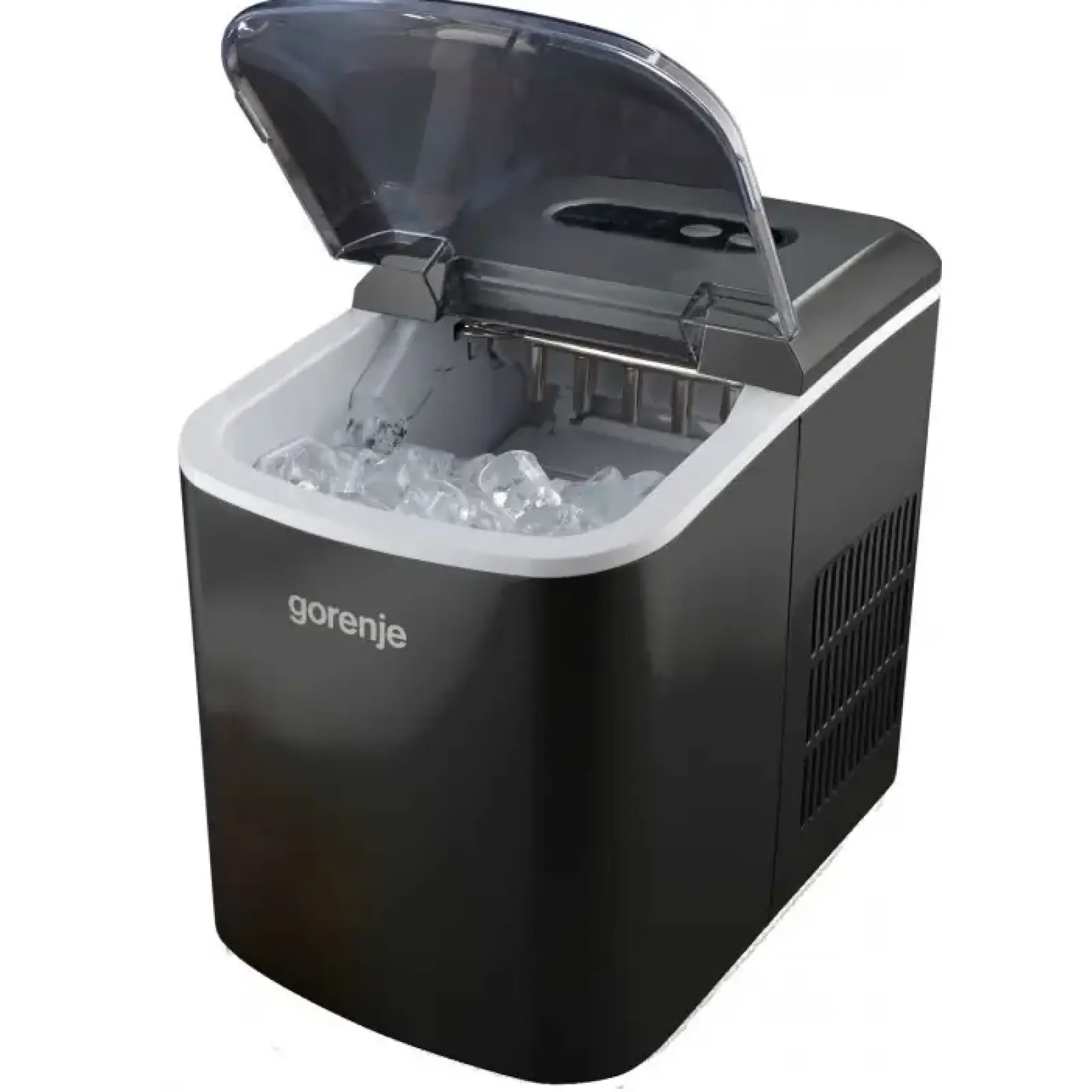 Модель GORENJE IMC 1200 B с габаритами 24.4 х 31.5 х 37.3 см получила корпус черного цвета. Панель управления представлена электронными кнопками. В ледогенераторе предусмотрена индикация уровня воды и льда.