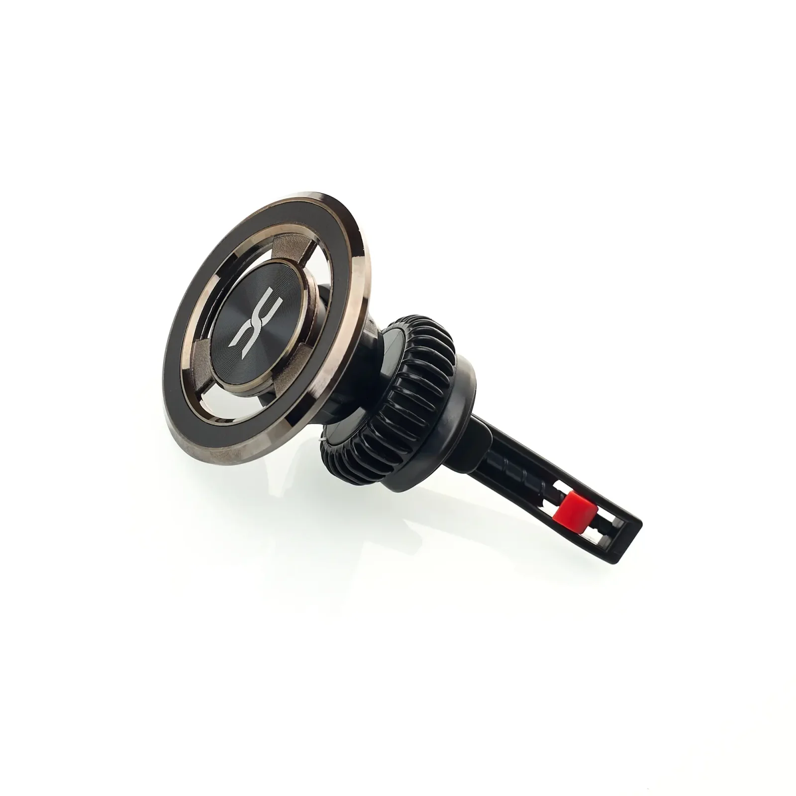 Магнітний автотримач DC (DH-H2) Magnetic Air Outlet чорний . Використання автомобільного тримача для мобільного телефону з кронштейном DH-H2 зменшить ризики виникнення небезпечих ситуацій при керуванні авто. Забезпечить міцне магнітне з'єднання за допомогою 42 магнітів та зручним магнітним кільцем, що входить до комплекту і кріпится до задньої частини телефону й не наносить шкоди йому. Крім того, частина, що розміщується на решітці панелі автомобіля має отвори для відведення повітря. Пристрій має поворотну голівку з кутом огляду 360 градусів, він стійкий до ударів і тиску. Підходить для телефонів із діагоналлю екрана 4,7-6,9 дюйма. Матеріал: цинковий сплав та ABS+PC пластикРозміри: 6см*10,8смВага: 95г