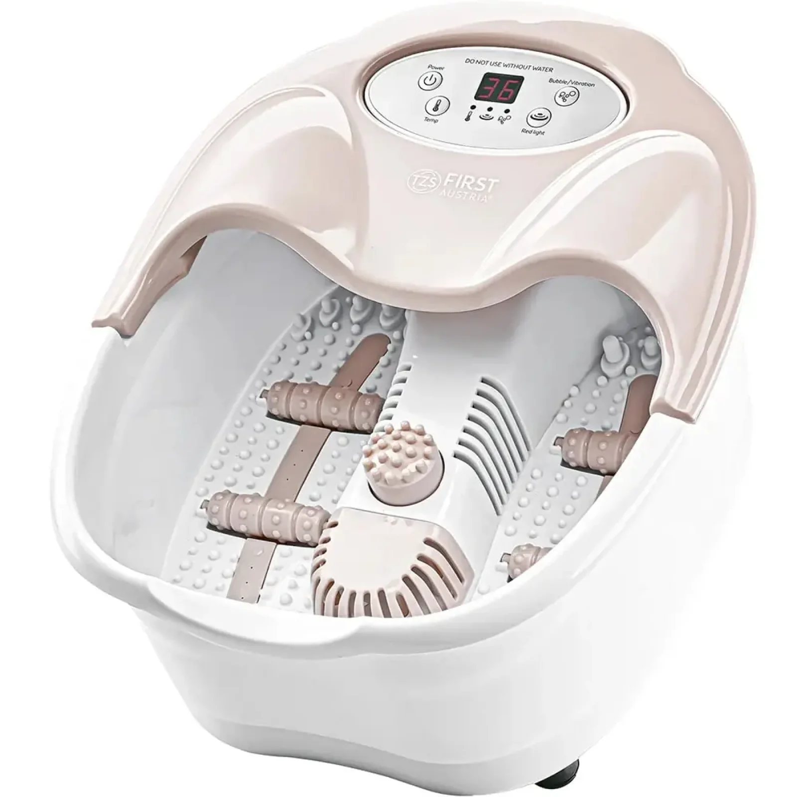 Масажна ванночка First FA-8115-3 — невигадливе, але від цього не менш геніальне рішення для втомлених стоп. Особливо цей пристрій актуальний для тих, хто багато часу проводить на ногах або займається спортом професійно. Прилад "вміє" робити вібраційний і повітряно-бульбашковий масаж. Для цього в його конструкції є 6 роликів. Додавши в ємність воду з оліями або солями, які вам найбільше подобаються, активуйте функцію підтримки температури води рідини. Півгодини блаженства вам забезпечені! За бажання можна задіяти опцію інфрачервоного нагріву. Світлодіодний дисплей допоможе вибрати потрібні опції для масажу.