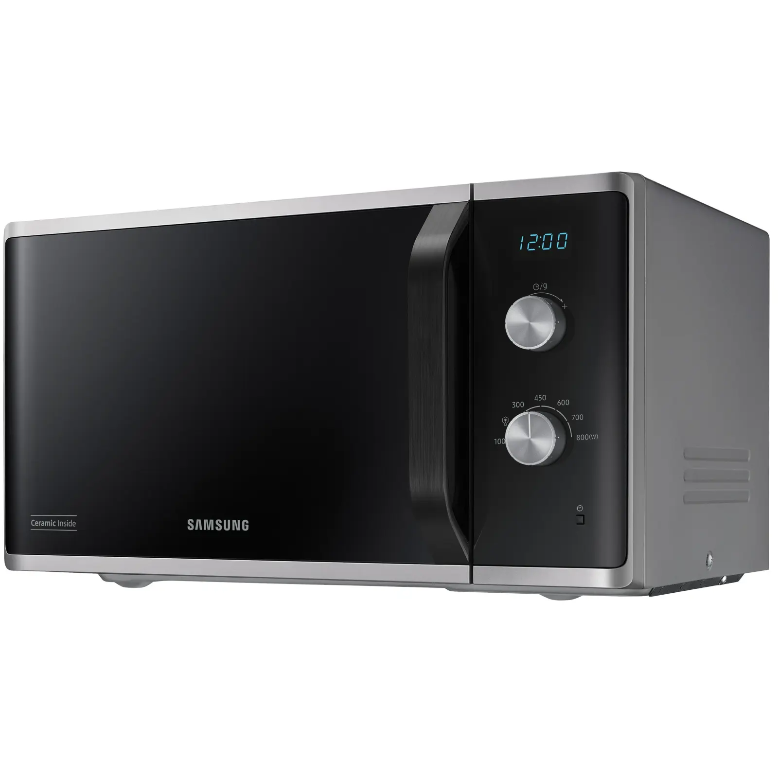Эта многофункциональная микроволновая печь Samsung MG23K3614AS/UA в стильном серебристом цвете сочетает в стоит мощность микроволн и возможности гриля, что позволяет не только быстро разогревать блюда, но и готовить сочное мясо или овощи с аппетитной золотистой корочкой