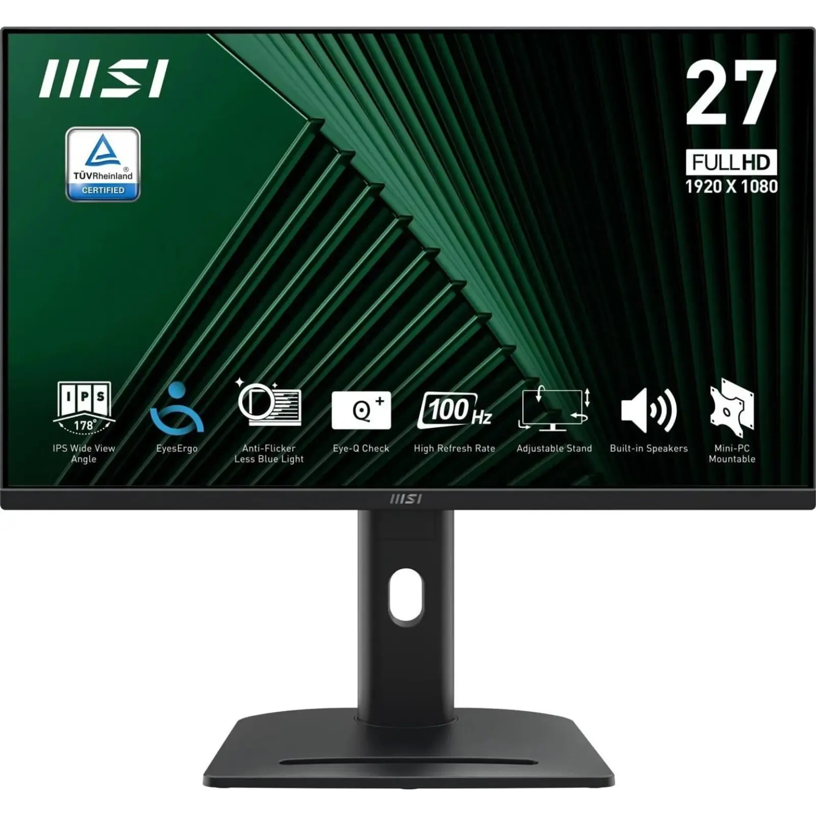 Сертифицированный TÜV дисплей и технология MSI EyesErgo с Anti-Flicker и Less Blue Light снижают напряжение глаз и усталость при длительной работе. Функция MSI Eye-Q Check помогает отслеживать состояние глаз и напоминает о необходимости отдыха, а эргономичная подставка позволяет регулировать наклон, поворот, высоту и портретный режим для максимального комфорта.