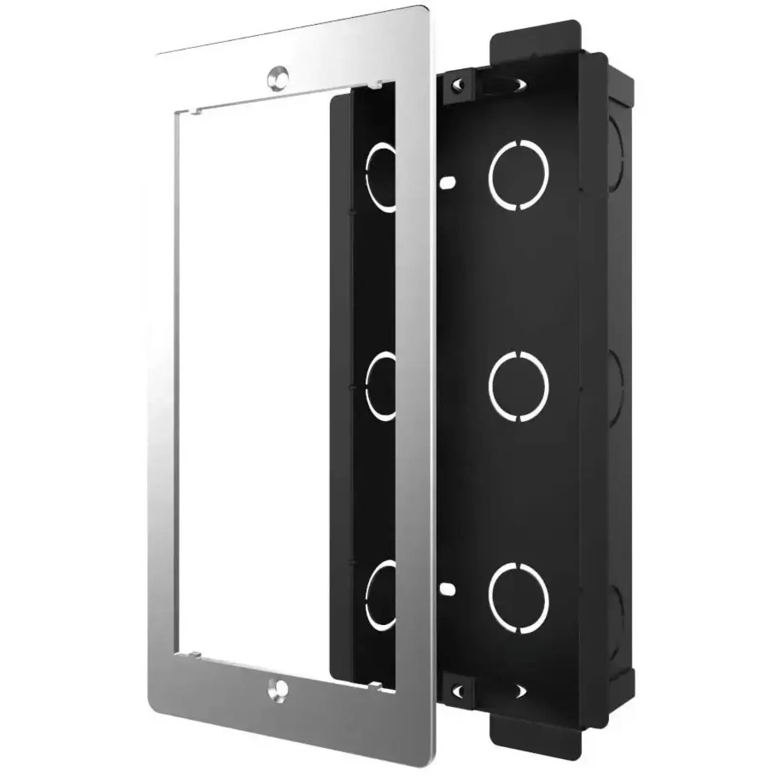Сучасний, стриманий дизайн монтажної коробки гармонійно доповнює зовнішній вигляд панелей Akuvox та легко інтегрується в різні архітектурні рішення.