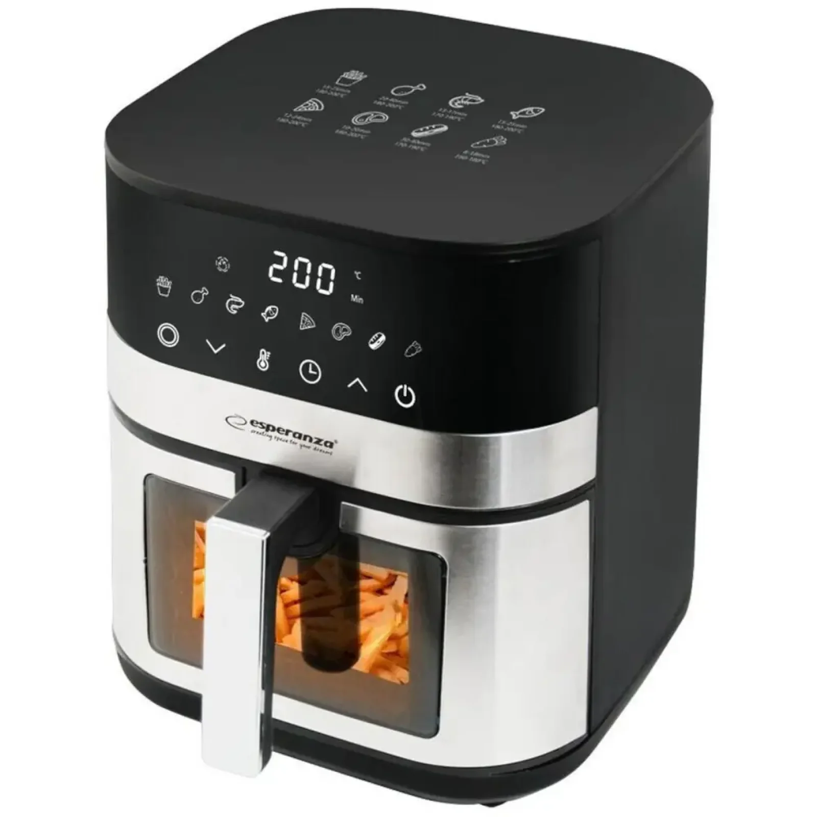 Диапазон температур от 80°C до 200°C открывает безграничные кулинарные возможности — от деликатного подогрева и запекания овощей до интенсивного приготовления рыбы и мяса с хрустящей корочкой. Вы легко подберёте оптимальный режим для любого продукта.