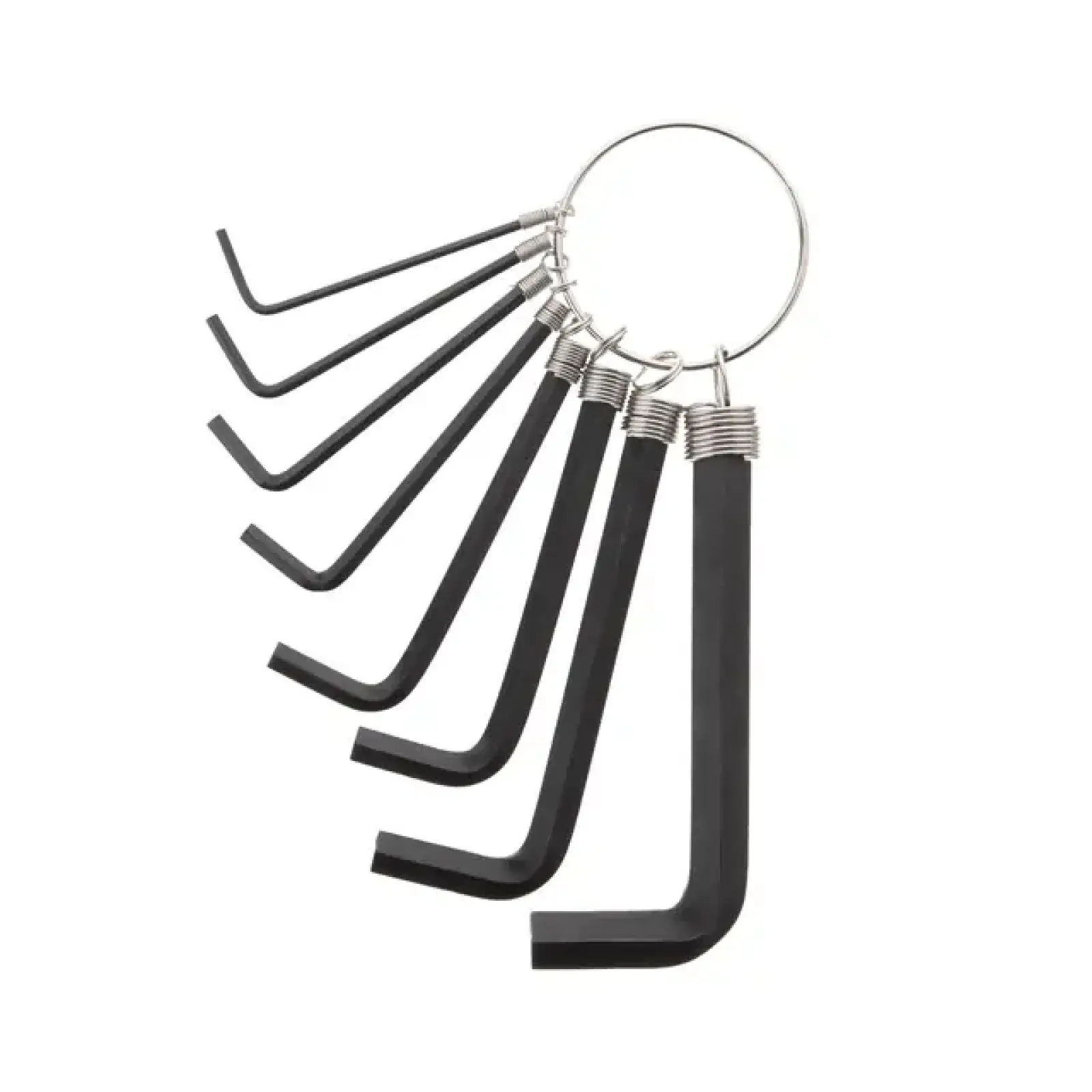 МатеріалКлючі виготовлені з якісної інструментальної сталі. Покриття чорнінням дозволяє підтримувати охайний зовнішній вигляд інструмента і забезпечує захист від механічних пошкоджень.Зручна робота8 метричних шестигранних ключів розташовані на персональних тримачах у вигляді брелока, набір зручно зберігати, ключі не губляться, також можна покласти їх у ящик до інших інструментів чи підвісити над робочим столом.- Тип: шестигранні