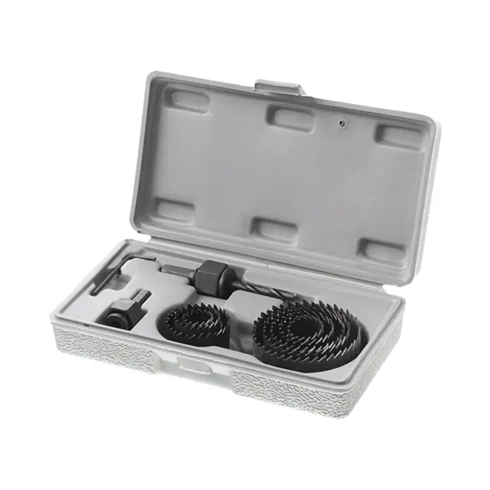 Коронки виготовлені з якісної сталі, що гарантує максимальну зносостійкість та тривалий строк служби. У комплекті є центрувальне свердло, діаметром 8 мм, що забезпечує точний та легкий початок свердління. Два перехідники в наборі з шестигранним хвостовиком не провертаються та надійно фіксуються в патроні дриля або верстата.
