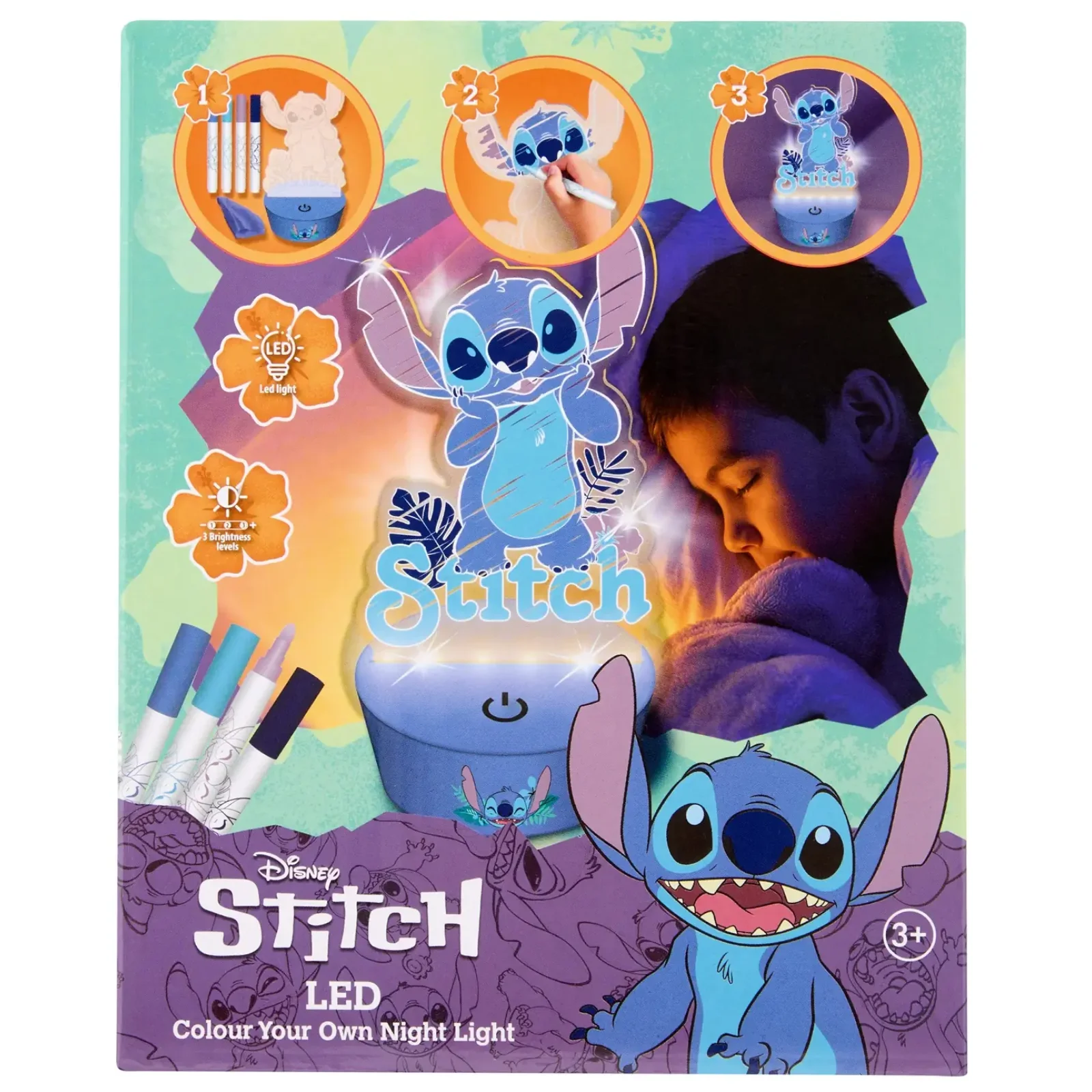 Набор включает в себя LED ночник, 4 маркера и ткань. Питание: 2 батарейки типа AAA (не входят в комплект). Рекомендуемый возраст: от 3 лет. Материал: пластик.