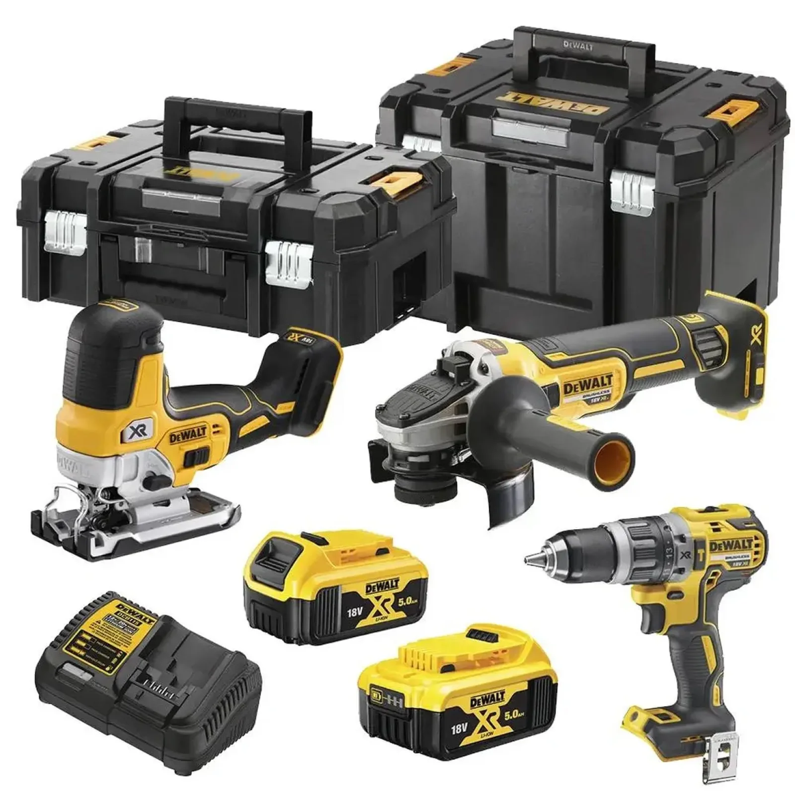 В комплекте две аккумуляторные батареи 5.0 Ач, быстрое зарядное устройство и прочные кейсы TSTAK.