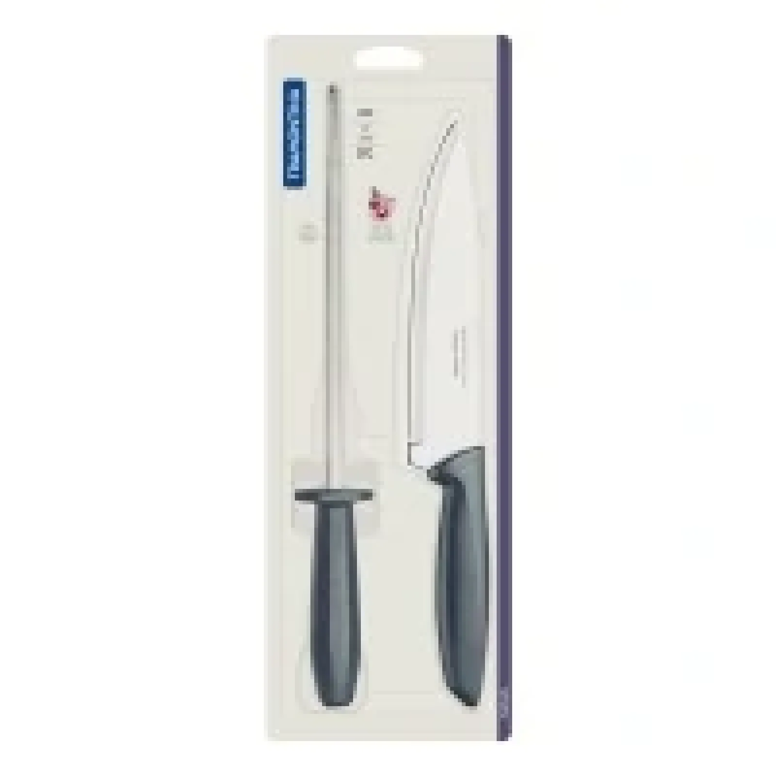Набор ножей Tramontina Plenus grey, 2 предмета (23498/611) Комплектация: Нож "ШЕФ" 1 шт-178 мм. Мусат 1 шт-203 мм. Материал лезвия: нержавеющая сталь AISI 420. Материал рабочей поверхности (мусат) углеродистая сталь. Материал рукоятки: полипропилен. Режущая кромка ножа: гладкая. Упаковка: индивидуальный блистер.