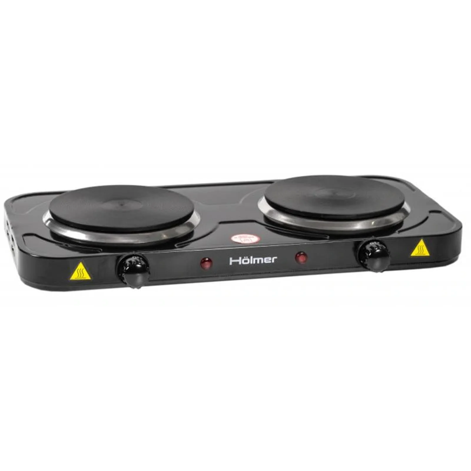 Настільна плита Holmer HHP-220B живиться від стандартної електричної мережі на 220 - 240В. Сумарна потужність конфорок становить 2000Вт (ліва потужністю 1кВт + права потужністю 1кВт).