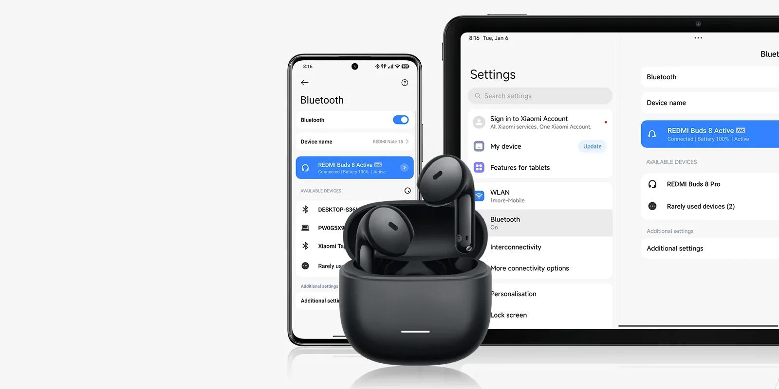 Модель поддерживает Bluetooth 5.4, что обеспечивает более стабильное соединение, быструю передачу данных и лучшую устойчивость к помехам при одновременно более низком энергопотреблении. Redmi Buds 8 Active также поддерживают подключение к двум устройствам одновременно, поэтому между работой и развлечениями можно переключаться без лишних действий. Для быстрого старта предусмотрено Google Fast Pair, а через приложение Xiaomi Earbuds доступны обновления прошивки, настройки EQ и кастомизация жестов управления.