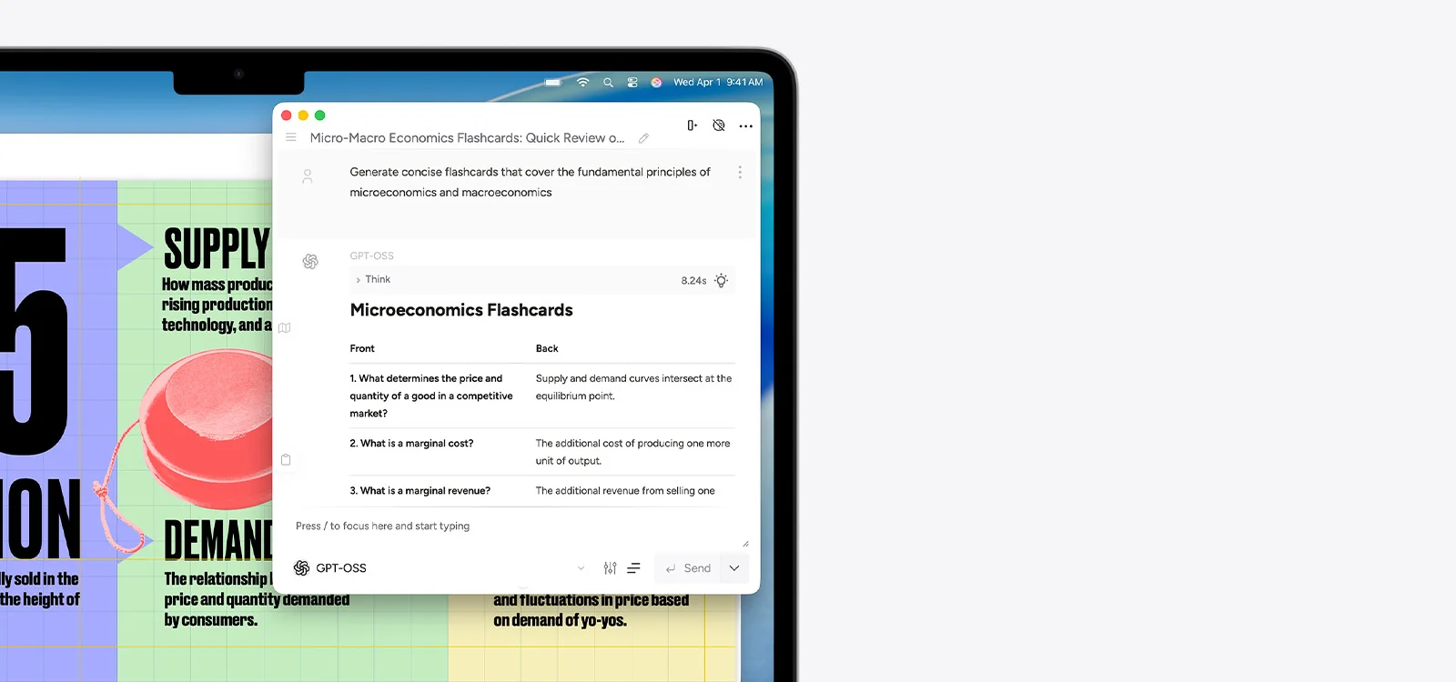 Для каждого — от студентов до владельцев малого бизнеса и творческих профессионалов — MacBook Air с M5 разработан так, чтобы использовать возможности ИИ в ежедневных рабочих процессах, сохраняя вашу приватность. Независимо от того, используете ли вы мощные функции Apple Intelligence в приложениях и macOS, запускаете ли большие языковые модели прямо на своем Mac или занимаетесь вайб-кодингом — вы остаетесь продуктивными и защищенными.