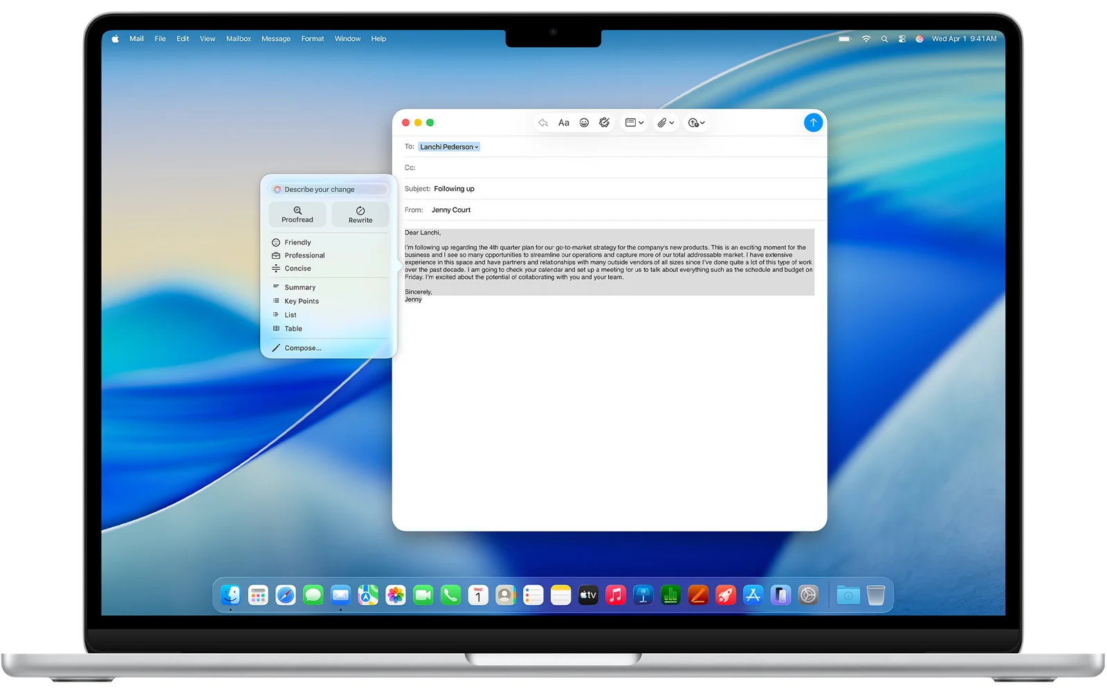 Writing Tools. Используйте Apple Intelligence для проверки вашего текста и переписывания различных версий, пока тон и формулировки не станут именно такими, как нужно, и для того, чтобы подвести итог выбранного текста одним щелчком. Или используйте Compose, чтобы напрямую обратиться к ChatGPT для создания контента с нуля.