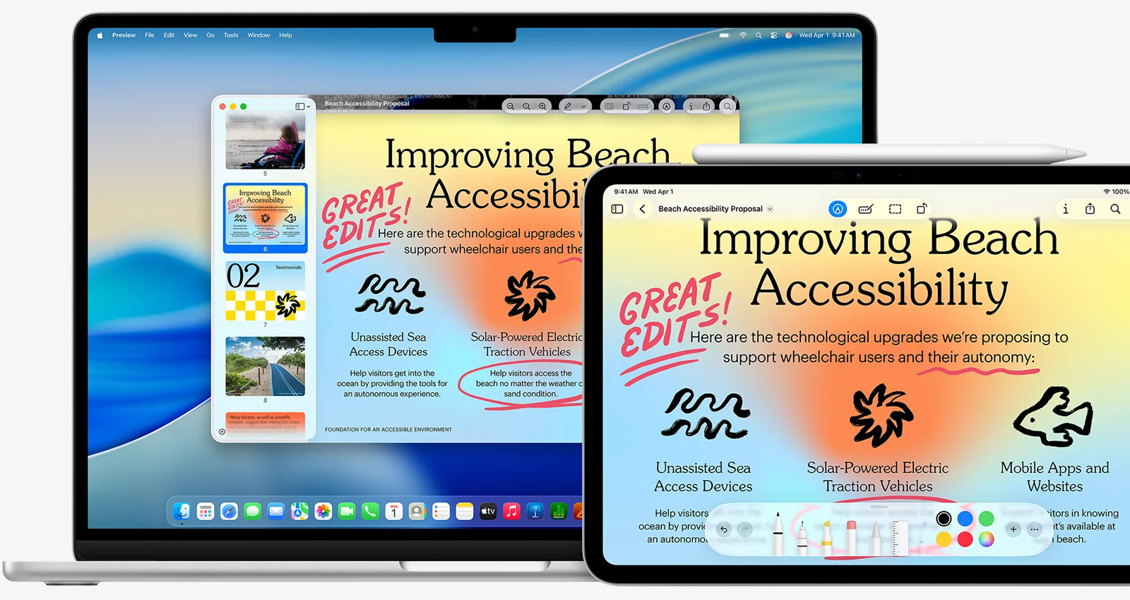 Разметка и эскизы. Подписывайте, комментируйте и рисуйте на iPad или iPhone — изменения мгновенно появляются на вашем Mac, и вы можете легко вставить их в любой документ.