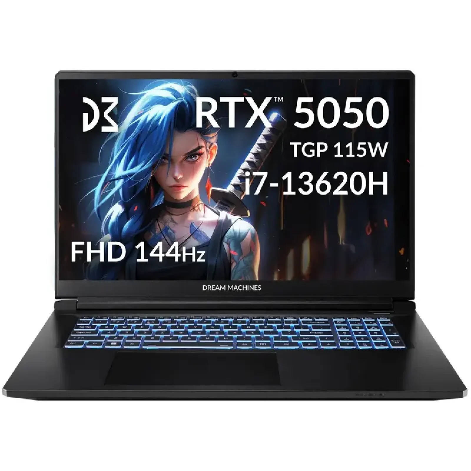 Dream Machines RG5050-17 (RG5050-17UA27) — это настоящий игровой инструмент для тех, кто хочет большой экран, высокую производительность и универсальность для работы и развлечений. Монтаж, стриминг, AAA-игры, работа с 3D — ноутбук справится со всем благодаря процессору Intel Core i7 13-го поколения, современной видеокарте NVIDIA GeForce RTX 5050 и 32 ГБ оперативной памяти DDR5. Это модель, созданная для быстрой, стабильной работы без компромиссов.