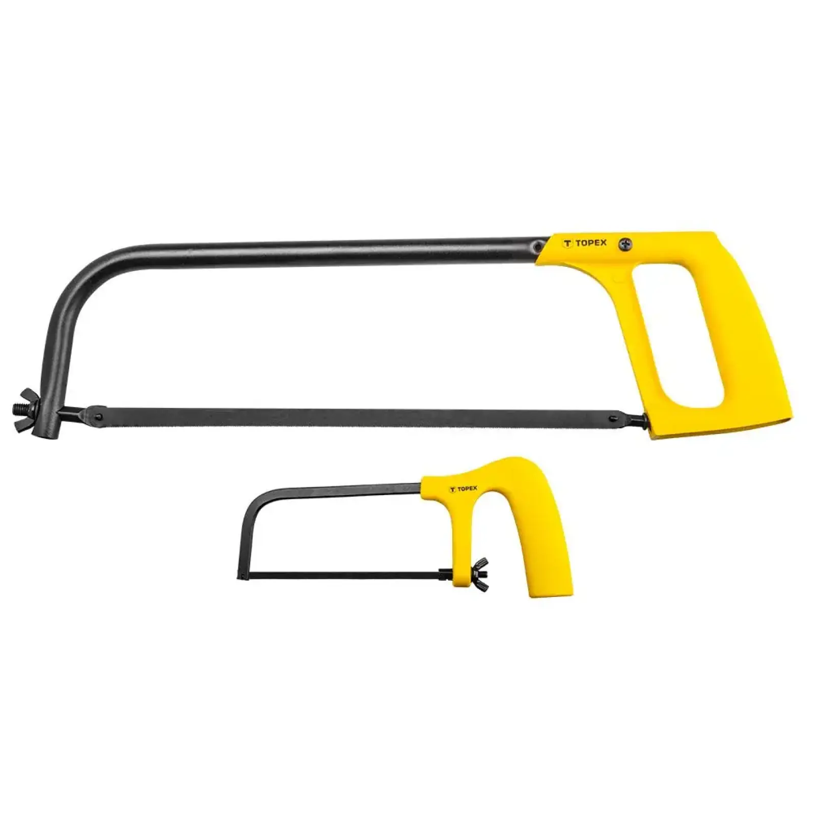 Набір із двох металевих пилок TOPEX (арт. № 10A160) складається з пилки з регульованою довжиною рами, що дозволяє використовувати пиляльний диск довжиною 250 мм або 300 мм. Пила довжиною 150 мм призначена для точного різання дрібних елементів або роботи у важкодоступних місцях. В обох інструментах є можливість встановити пильне полотно у двох площинах, що дозволяє краще налаштувати пилку під потреби користувача. Ергономічні ручки підвищують комфорт роботи. Бренд TOPEX орієнтований на любителів DIY.
