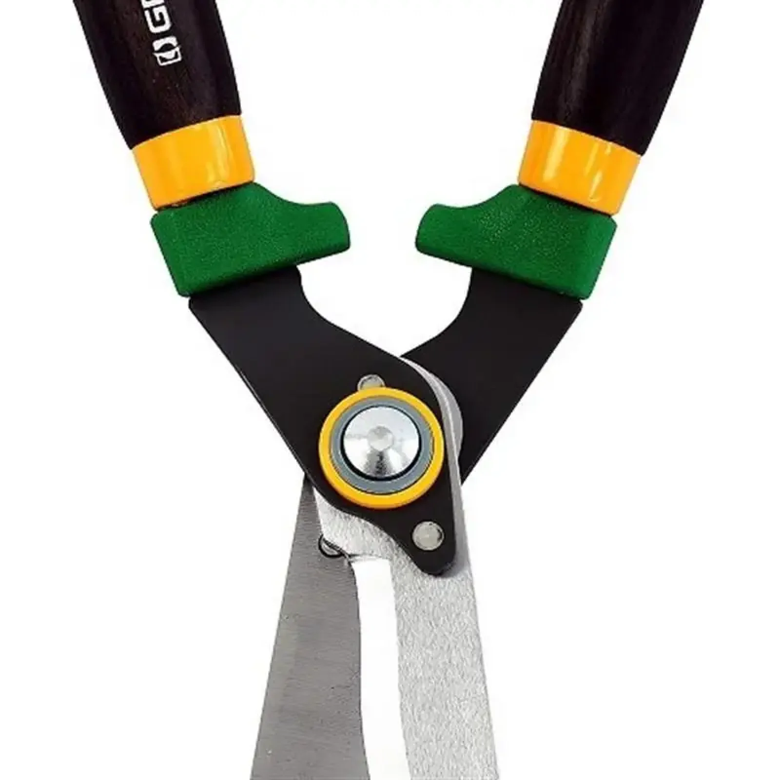 Ножиці для живоплоту GRUNTEK Panthera 640мм/230мм - призначені для професійного застосування. Хвилеподібні леза SK5 з прецизійним заточуванням дозволяють виконувати точні та потужні зрізи навіть з невеликими гілками. Лезо швидко і легко знімається для заточування. З новими ергономічними ручками з ясеню та надійними упорами для зручного різання. Округла форма ручки забезпечує зручне захоплення для маленьких і великих рук. Нахил леза та рукоятки полегшує обрізування країв та гілок у важкодоступних місцях