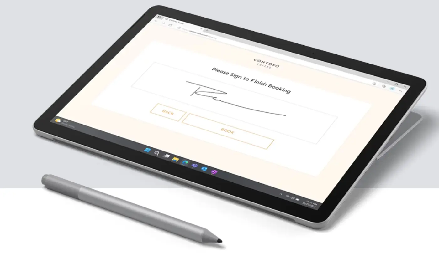 Для Surface Go 4 доступна целая экосистема аксессуаров — антимикробные и ударопрочные чехлы, автомобильные крепления, сенсорный стилус Surface Pen, премиальная клавиатура Signature Type Cover и современная Surface Arc Mouse. Все эти решения созданы для эффективной работы в любых бизнес-условиях: медицинская сфера, ритейл, офисы, выездные операции и центры обслуживания.