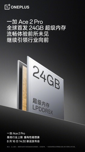 Ходили слухи, что OnePlus Ace 2 Pro, который будет представлен 16 августа, будет иметь 24 ГБ оперативной памяти, и эти слухи оправдались, поскольку OnePlus объявила, что Ace 2 Pro будет иметь колоссальные 24 ГБ оперативной памяти LPDDR5X.