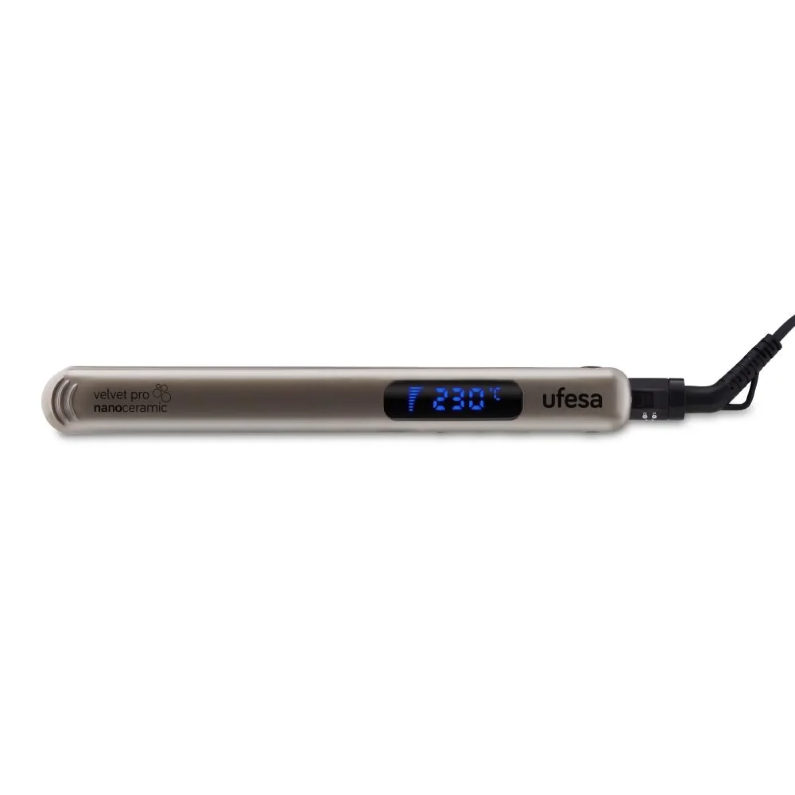 Power consumption 60 Watts | Plate size 37 мм | Heat-up time 30 sec | Temperature setting 230 °С | Hair straigthener features Loop for hanging/Pouch included/Curling option/LCD display | Plate features Ceramic | Power supply type Grid | Colour Grey