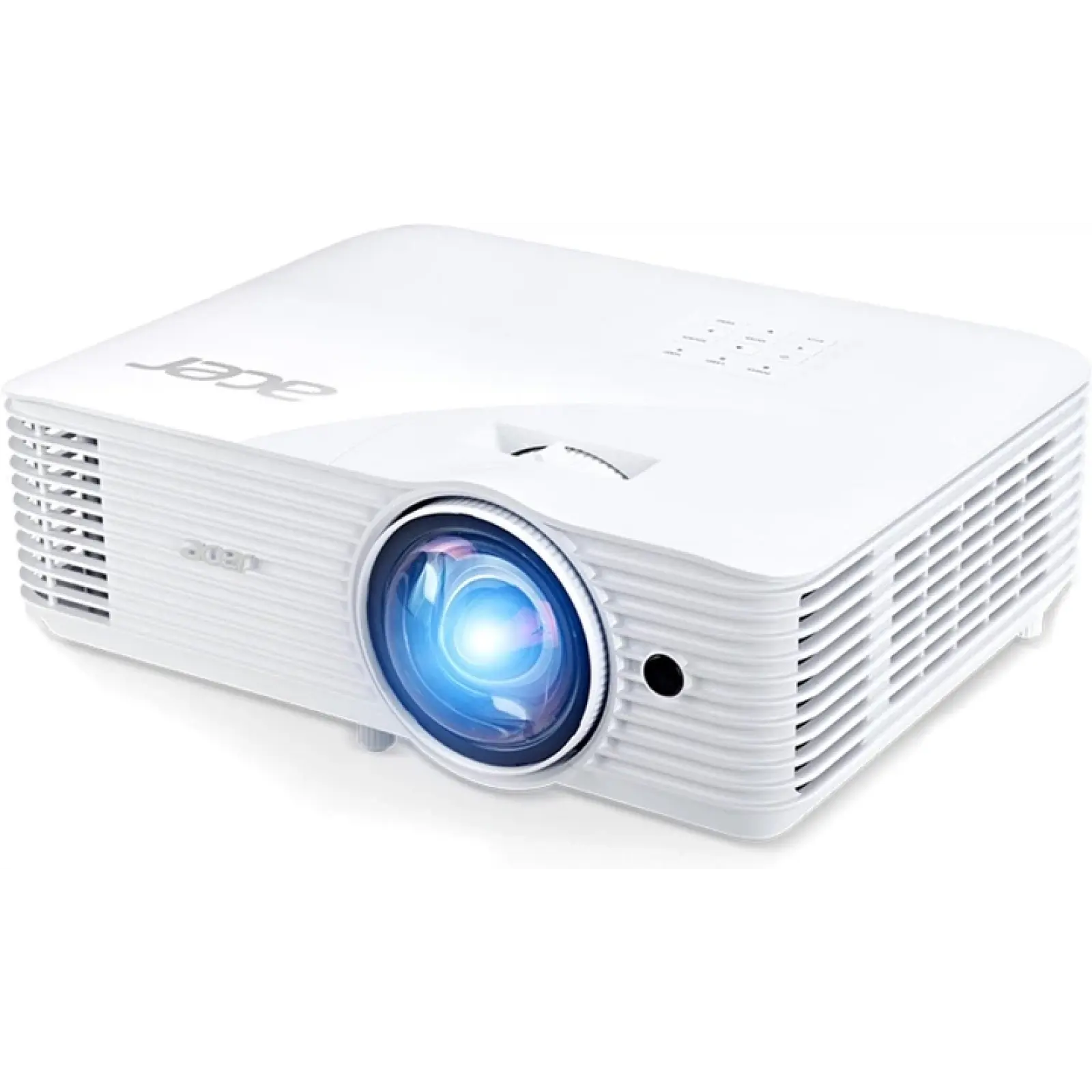 Acer S1286Hn — это профессиональное решение для презентаций, оптимизированное для работы в ограниченном пространстве. Благодаря короткофокусному объективу, проектор способен создать изображение диагональю 77 дюймов с расстояния всего 97 см от экрана. Такая особенность позволяет докладчику свободно передвигаться у доски, не перекрывая световой поток и не создавая теней на полотне. Яркость 3500 люмен в сочетании с технологией DLP гарантирует отличную видимость текста и графики даже в помещениях со средним уровнем искусственного освещения.