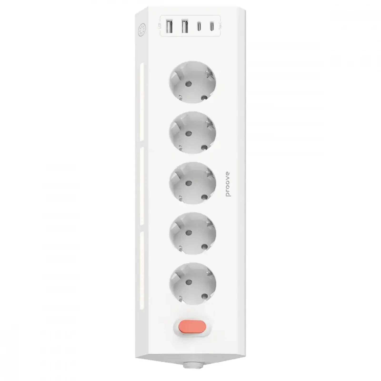 Proove Prism Socket позволяет одновременно подключать до девяти устройств. Пять розеток AC подходят для питания бытовой техники, а порты USB и Type-C позволяют заряжать смартфоны, планшеты, наушники и другие мобильные гаджеты без использования дополнительных адаптеров.