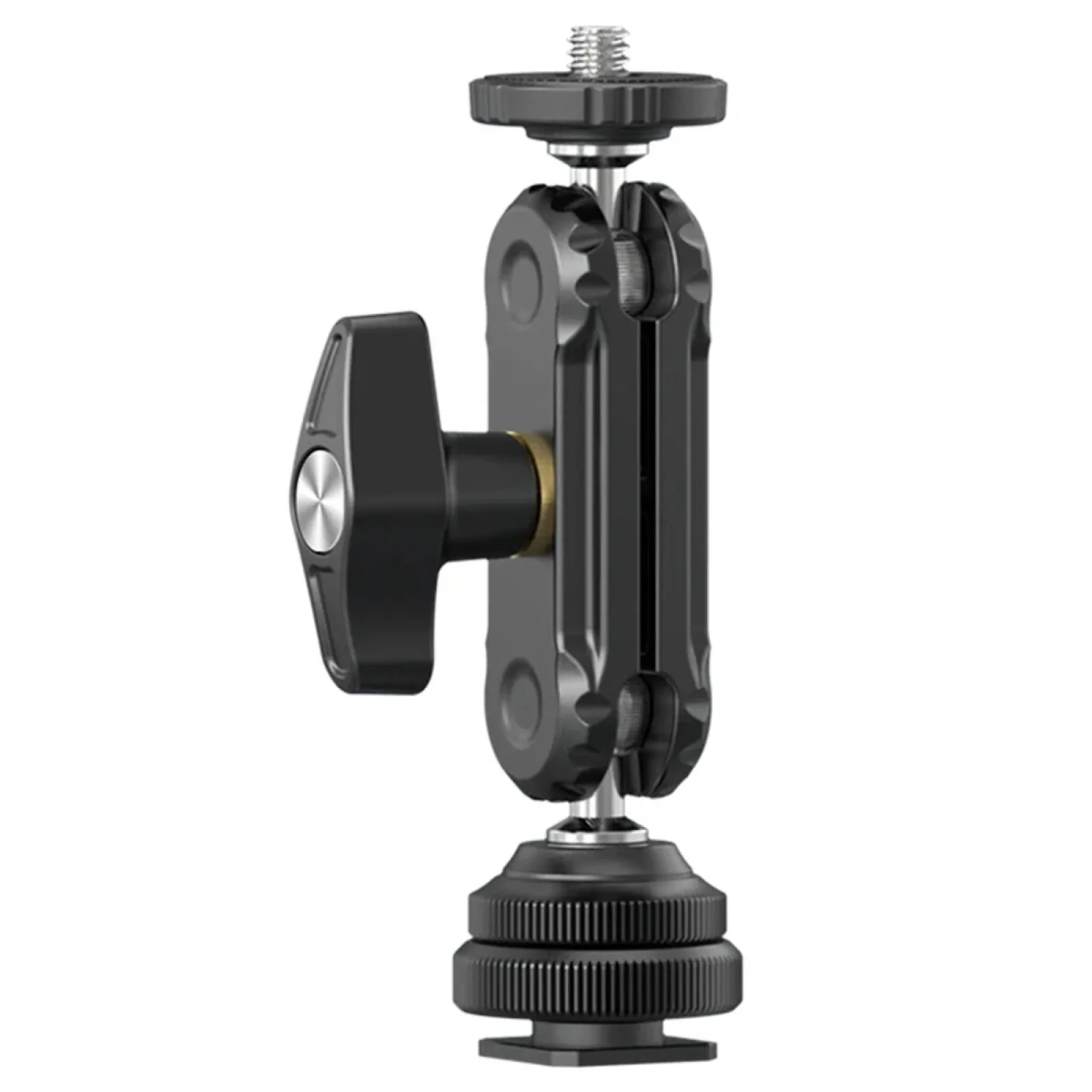 Шарнірне кріплення Ulanzi R098 Double Ball Heads with Code Shoe Mount (UV-2954 R098) обладнаний гвинтом 1/4 дюйма та холодним башмаком для зручності використання з різноманітними пристроями.