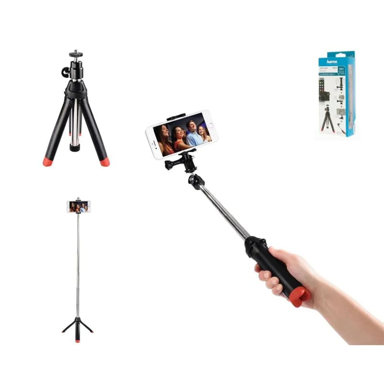 Комлектация • 1 штатив • 1 телескопическая штанга • 1 адаптер GoPro • 1 держатель для смартфона