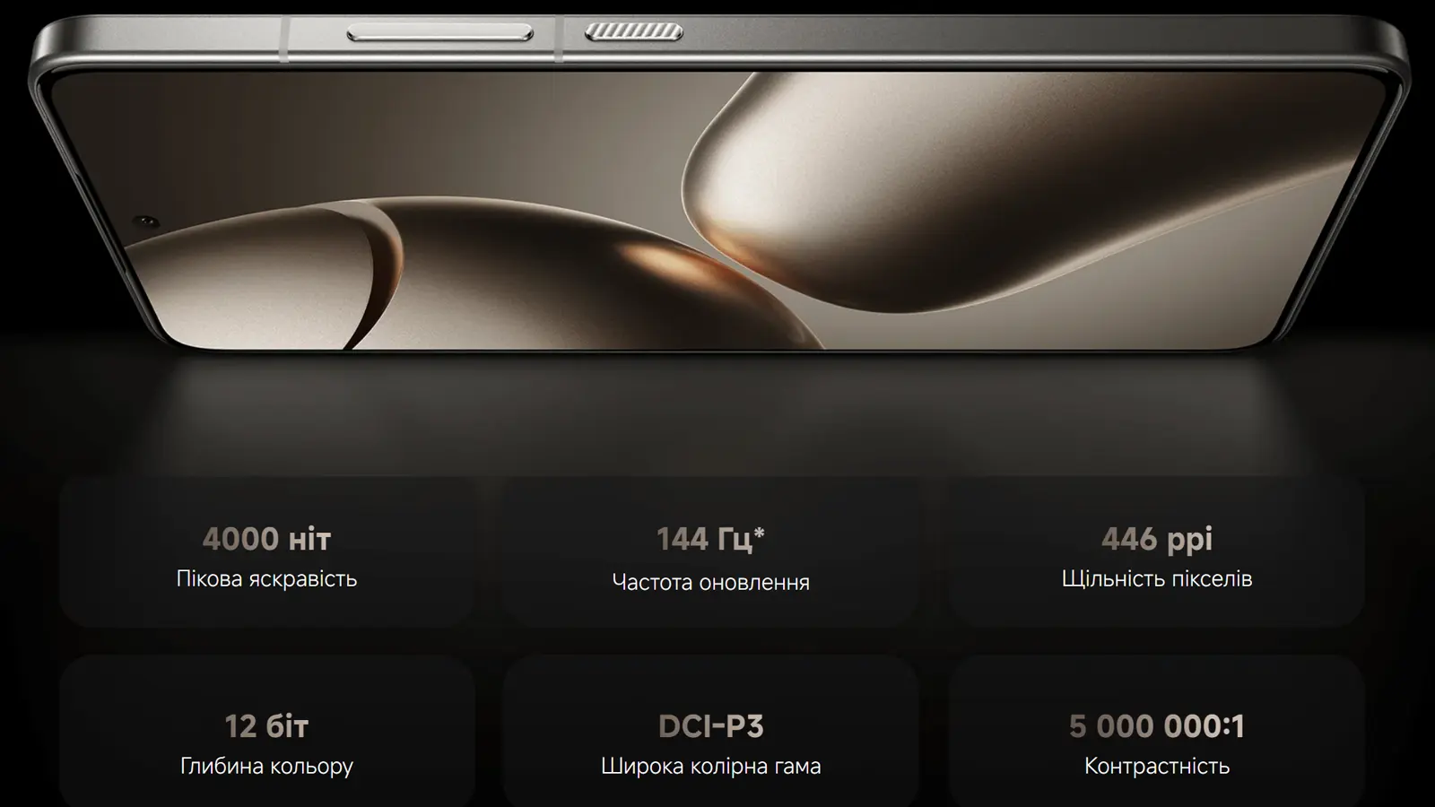 6,67-дюймовый AMOLED-дисплей, разрешение 1,5K, частота обновления 144 Гц, пиковая яркость 4000 нит и глубина цвета 12 бит.