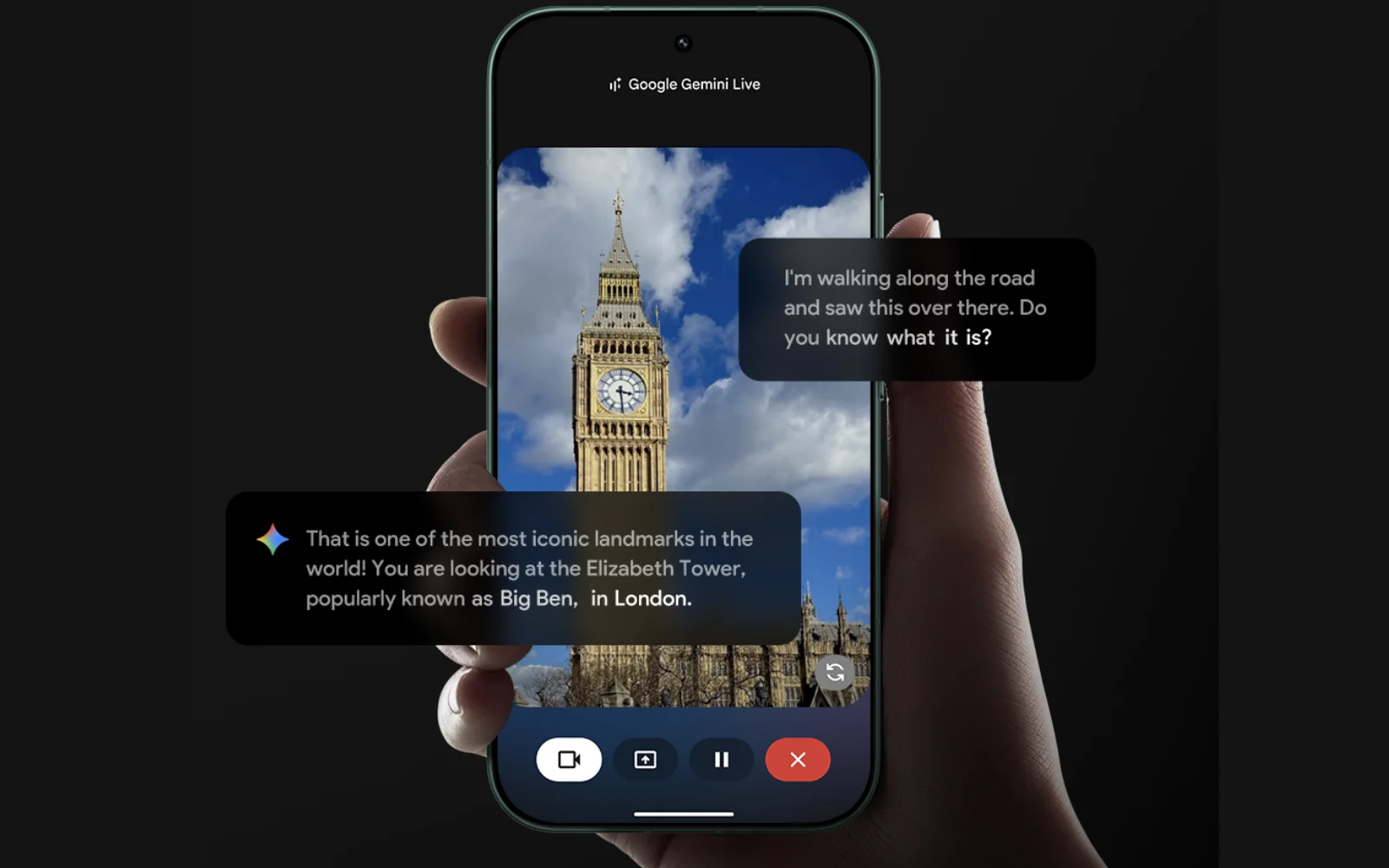 Gemini Live. Спрашивайте Gemini обо всем, что видите. Предоставьте доступ к своей камере или экрану во время общения с Gemini Live.