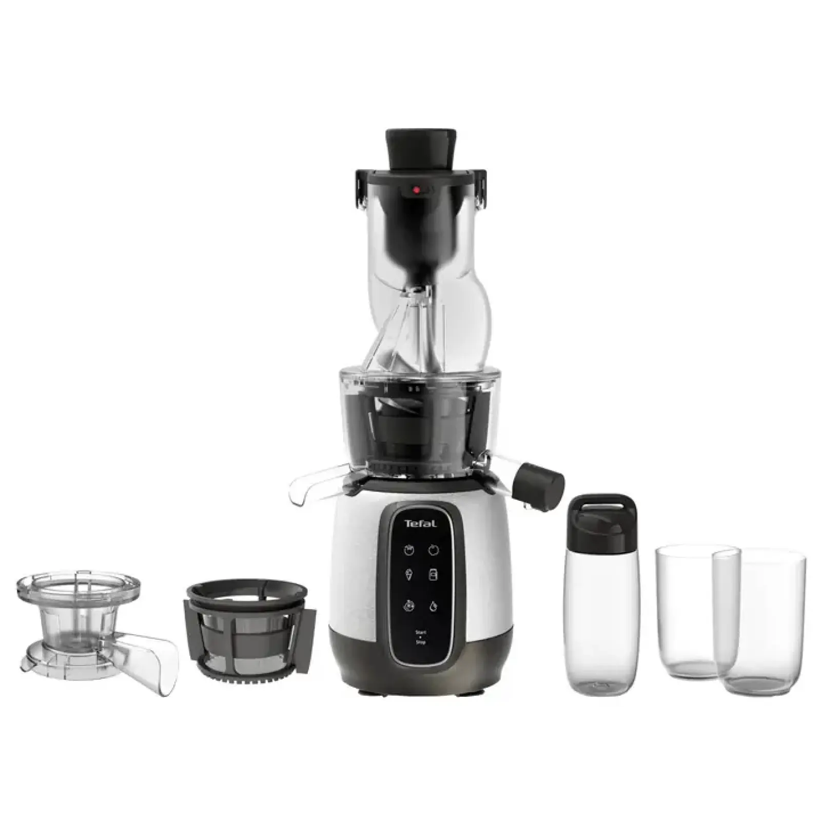 Соковыжималка укомплектована дополнительным фильтром для приготовления мороженого и густых соусов (кули), что превращает её в многофункциональный кулинарный центр. В комплекте также поставляется дорожный стакан объемом 600 мл, который позволяет брать свежеприготовленный напиток с собой на прогулку, в спортзал или на работу. Система «капля-стоп» надежно блокирует выход сока, предотвращая загрязнение рабочей поверхности при смене емкостей.