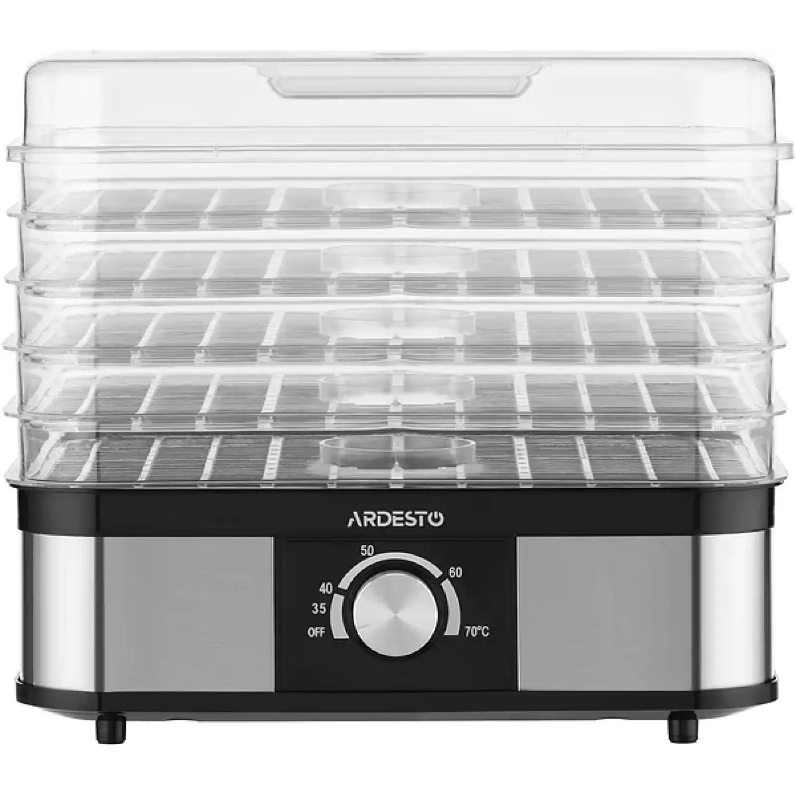 Ardesto FDB-52832B UA — это мощная и надежная сушилка конвективного типа, созданная для тех, кто серьезно подходит к заготовке полезных продуктов. Благодаря классическому черному дизайну и эргономичной форме, этот прибор гармонично вписывается в любой интерьер. Сушилка идеально подходит для приготовления сухофруктов, вяления овощей, грибов, мяса и рыбы, а также для деликатной дегидратации лекарственных трав, сохраняя при этом максимум витаминов и природный цвет ингредиентов.