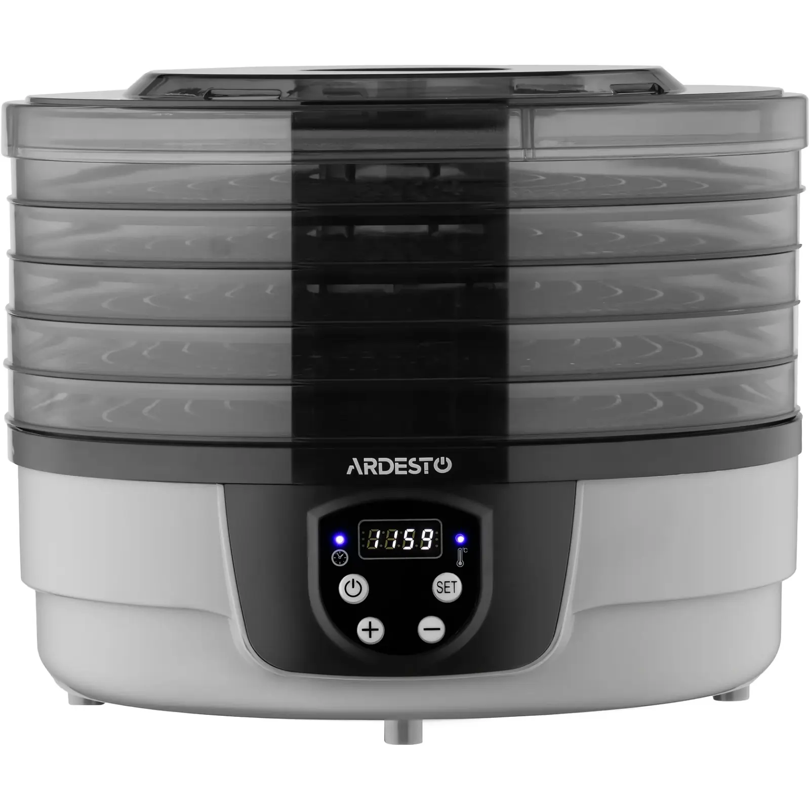Ardesto FDB-532TTC UA — это современная конвективная сушилка, сочетающая в себе высокую технологичность и компактный дизайн. Благодаря электронному управлению, этот прибор идеально подходит для тех, кто ценит точность в приготовлении домашней пастилы, сухофруктов, овощных чипсов или вяленого мяса. Стильный цилиндрический корпус с прозрачными секциями не только эстетично смотрится на кухне, но и позволяет полностью контролировать процесс дегидратации на каждом ярусе.