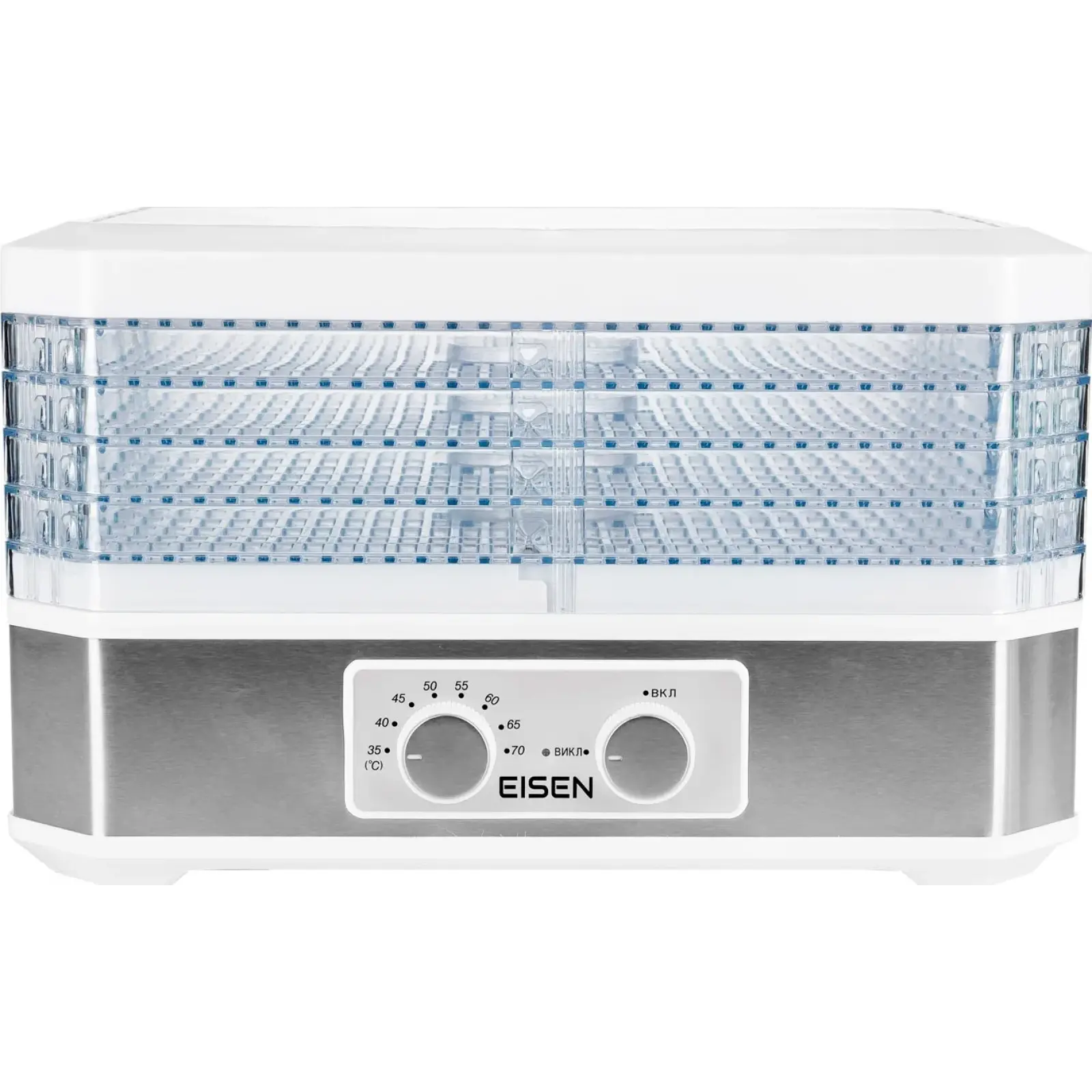 Eisen EFD-055W UA — это мощная и практичная конвективная сушилка, созданная для качественной подготовки домашних запасов. Благодаря высокой производительности и продуманной эргономике, этот прибор обеспечивает равномерное удаление влаги из фруктов, овощей, ягод, грибов и мяса. Модель выполнена в классическом белом дизайне с прозрачными секциями, что позволяет легко контролировать состояние продуктов на любом этапе дегидратации, не нарушая температурный режим внутри устройства.