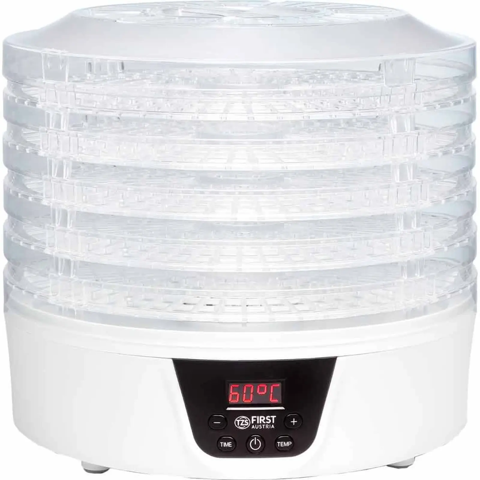 Главным преимуществом модели FA-5126-8 является плавная механическая регулировка температуры в диапазоне от 35°C до 70°C. Это позволяет выбрать идеальный тепловой режим для каждого типа ингредиентов: низкая температура подойдет для деликатной сушки ароматных трав и цветов, а более высокие показатели — для приготовления мясных джерков, вяленой рыбы или подготовки корнеплодов. Процесс сушки происходит равномерно на всех уровнях, обеспечивая идеальный результат.