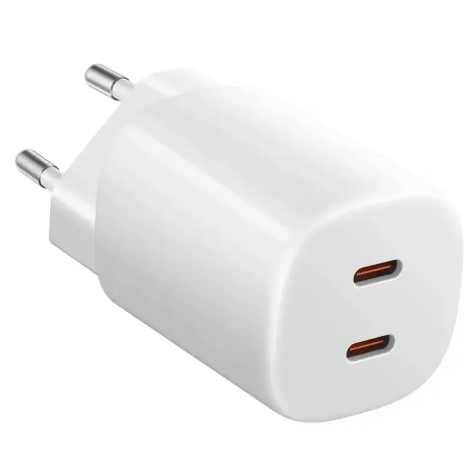 Одной из ключевых особенностей модели является два порта USB Type-C, что позволяет одновременно заряжать два устройства. При использовании одного порта доступна максимальная мощность до 45 Вт, а при подключении двух гаджетов адаптер распределяет энергию между ними – 25 Вт и 20 Вт, обеспечивая эффективную зарядку обоих устройств. Это делает зарядное устройство универсальным решением для смартфонов и аксессуаров, таких как беспроводные наушники или планшеты.