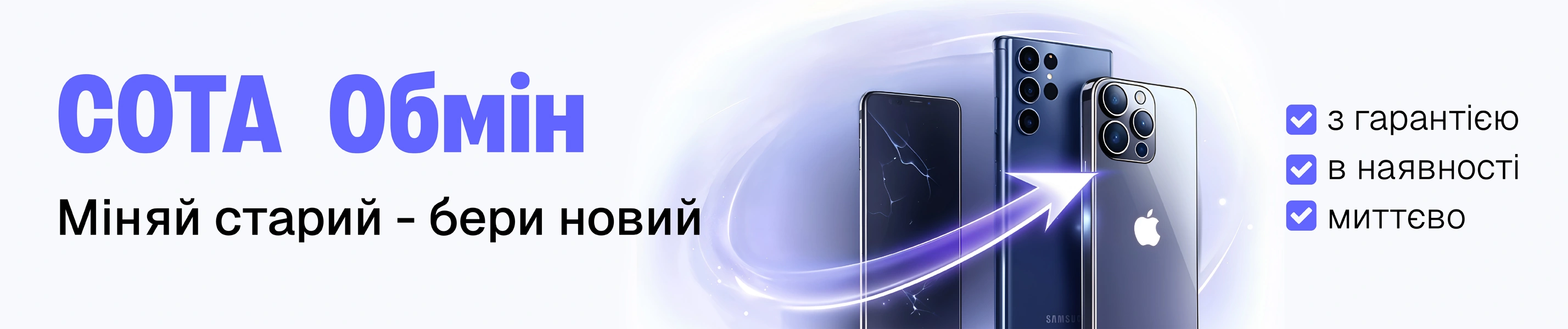 Программа СОТА Обмен - это удобный способ получить скидку на новую технику, сдав свою старую технику Apple или Samsung. Вам не нужно тратить время на продажу на вторичном рынке - мы оценим ваш гаджет и зачислим его стоимость как часть оплаты за любой новый товар из нашего ассортимента.