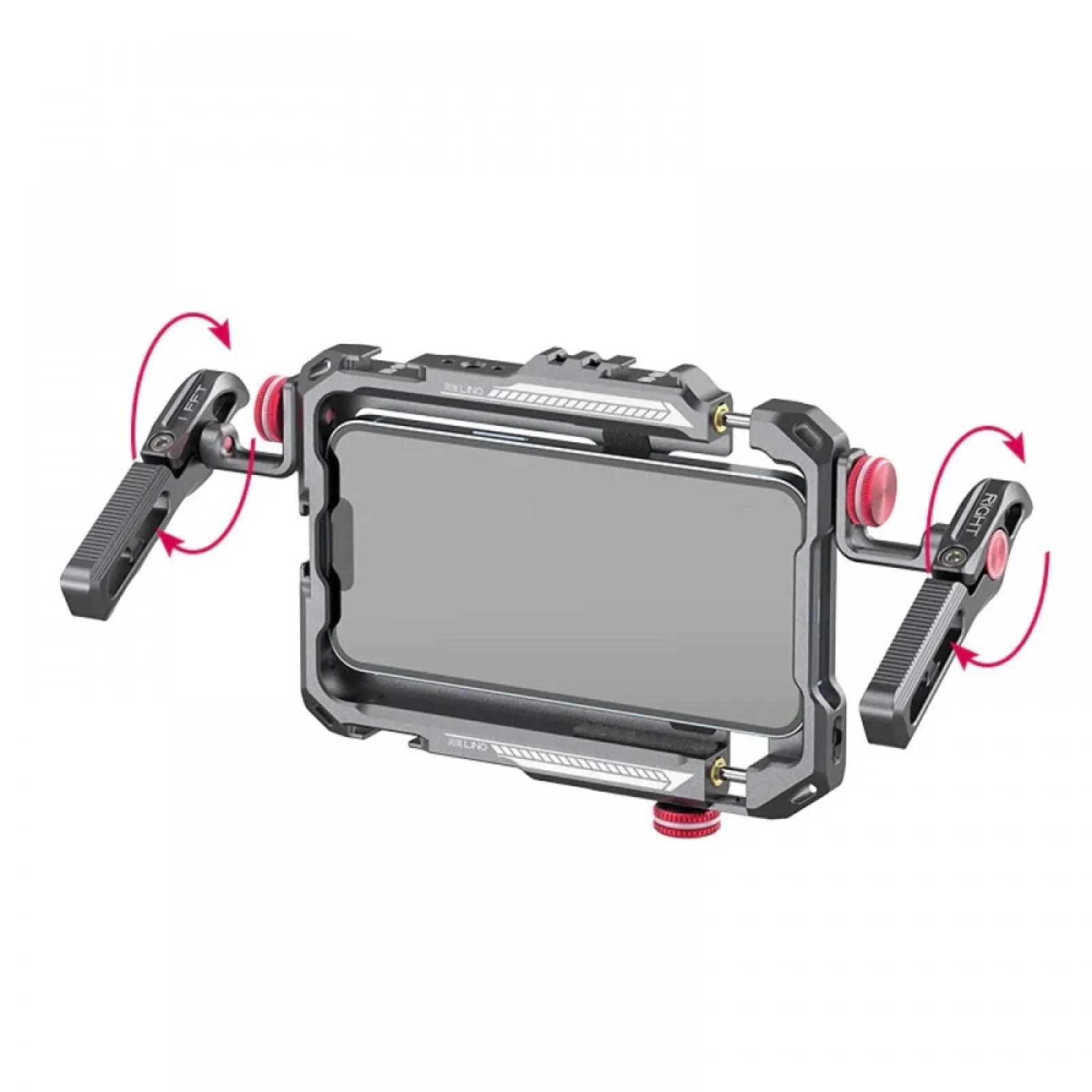 Рукоятки вільної обертаються на 360 градусів, завдяки чому ви зможете вибрати будь-який зручний для зйомки ракурс. Корпус важить всього 245 г і не буде перевантажувати руки. Чохол-клітка здатна утримати навіть великі гаджети, такі, як iPhone 13, всередині передбачені гумові вставки для амортизації та захисту смартфона.