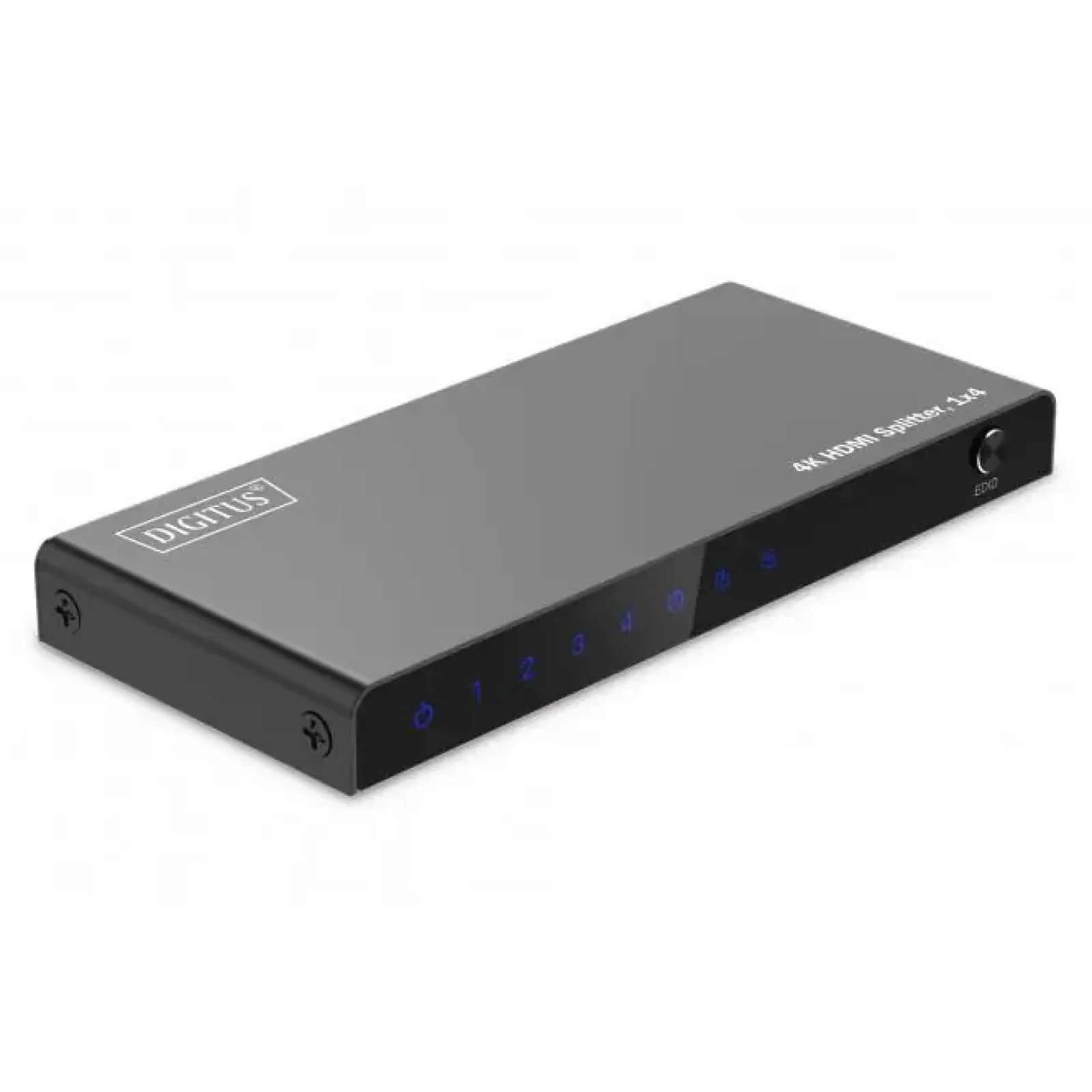 Розгалужувач DIGITUS® HDMI розподіляє аудіо- та відеосигнали вашого HDMI-пристрою на 4 телевізори, монітори або проектори з роздільною здатністю UHD 4K / 60 Гц