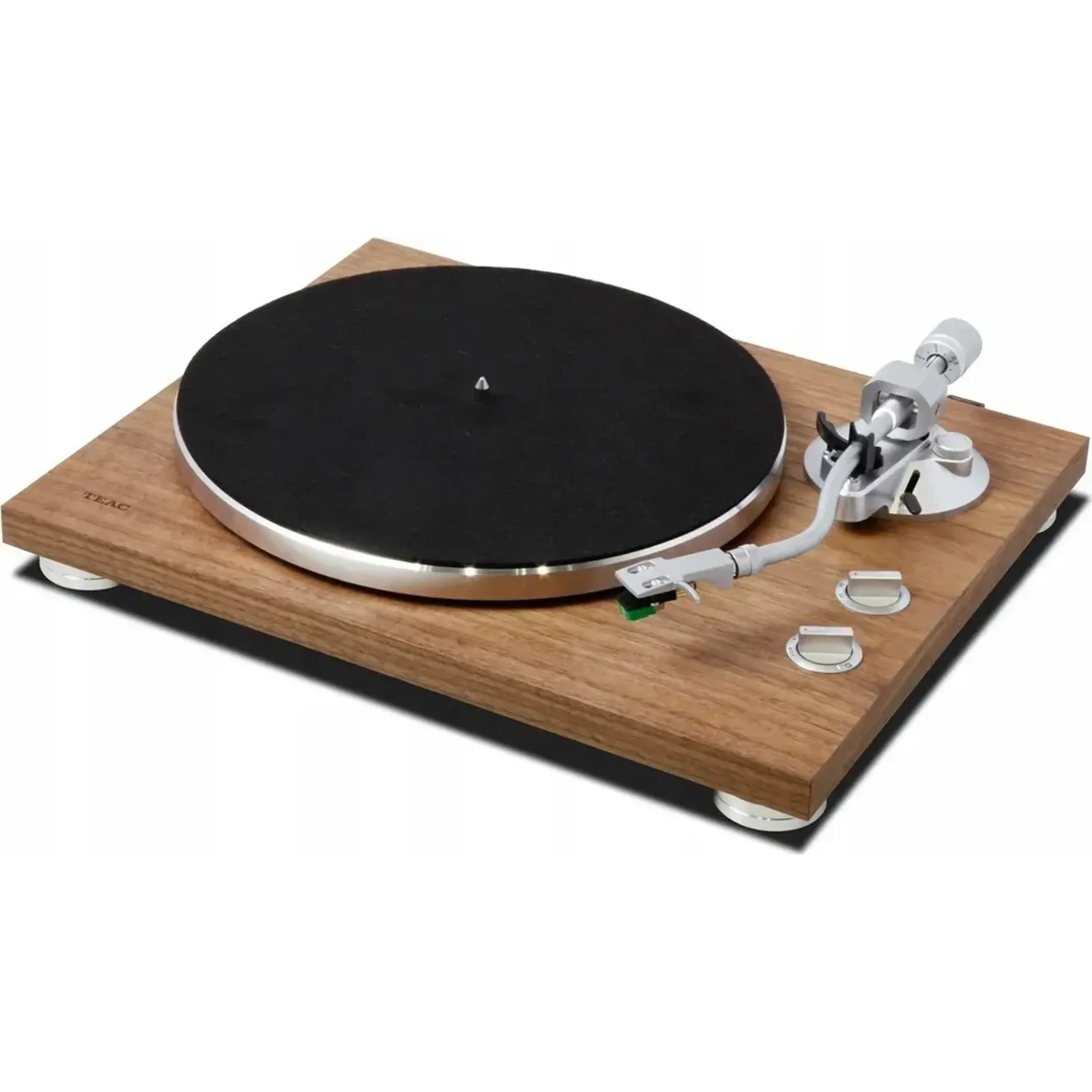 Корпус плеера изготовлен из высокоплотной MDF-плиты, что обеспечивает надежность и минимизирует резонансы. Алюминиевые ножки с резиновыми амортизаторами создают "плавающую" конструкцию шасси, эффективно изолируя механизм от внешних вибраций и колебаний. Опорный диск – массивный литой алюминиевый, диаметром 30 см, с фетровым ковриком для пластинок. Он приводится в движение пасековым механизмом от электромотора постоянного тока с высоким крутящим моментом, что гарантирует плавное и стабильное вращение. Электронное переключение скоростей (33, 45, 78 об/мин) производится удобной поворотной ручкой на верхней панели, с точностью ±2% и низким коэффициентом детонации 0,2%.
