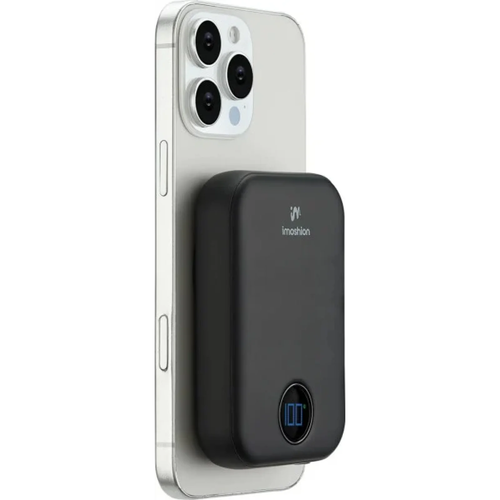 Imoshion MagSafe Powerbank 10000mAh Black (8720922101075) — це тонкий магнітний пауербанк для iPhone з бездротовою зарядкою 15 Вт, ємністю 10000 мА·год, портами USB-C 20 Вт та USB-A 22,5 Вт і LED-дисплеєм, який забезпечує зручну зарядку без проводів у компактному чорному корпусі.