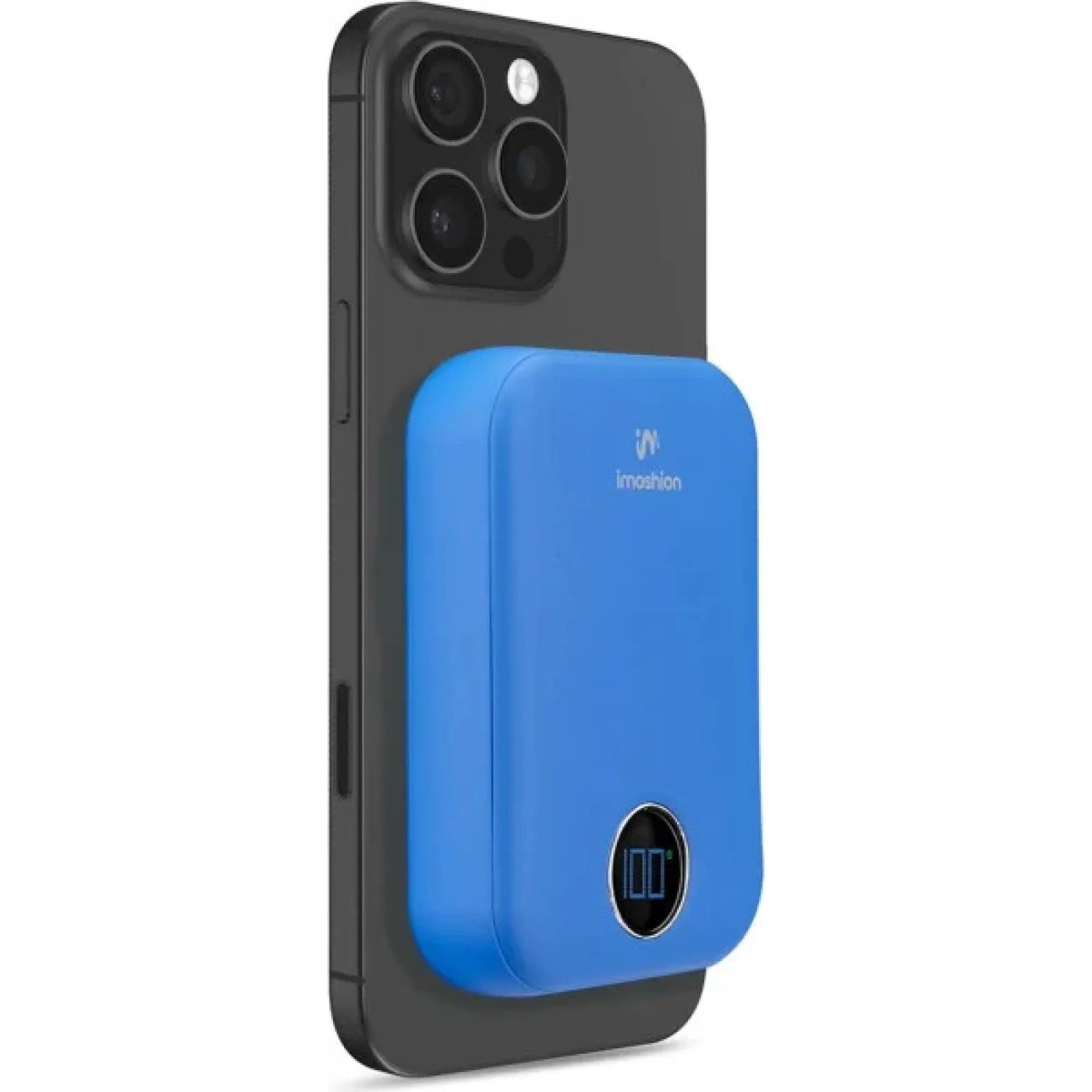 Imoshion MagSafe Powerbank 10000mAh Cobalt Blue (8721064033811) — це тонкий магнітний пауербанк для iPhone з бездротовою зарядкою 15 Вт, ємністю 10000 мА·год, портами USB-C 20 Вт та USB-A 22,5 Вт і LED-дисплеєм, який забезпечує зручну зарядку без проводів у компактному чорному корпусі.