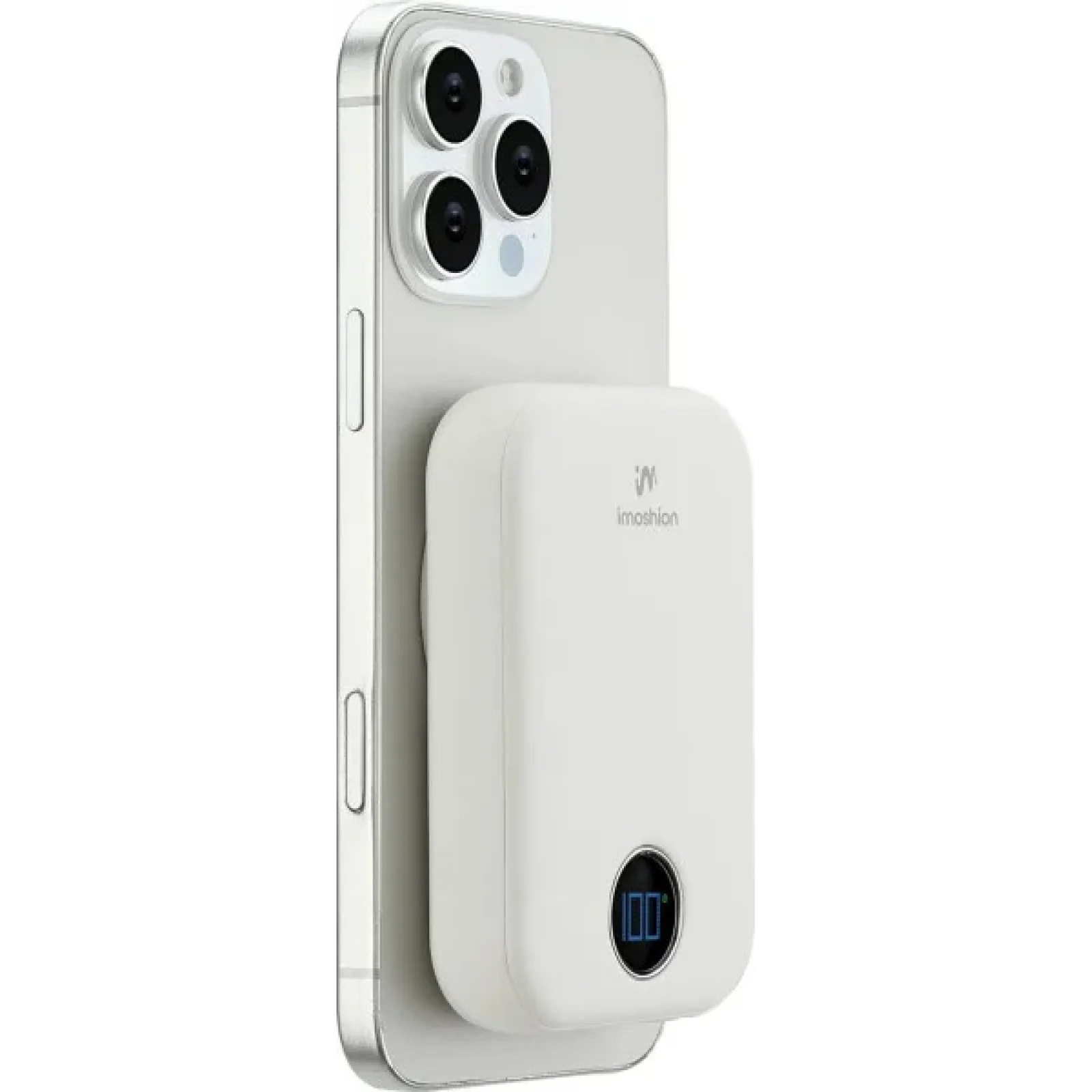 Imoshion MagSafe Powerbank 10000mAh White (8720922101068) — це тонкий магнітний пауербанк для iPhone з бездротовою зарядкою 15 Вт, ємністю 10000 мА·год, портами USB-C 20 Вт та USB-A 22,5 Вт і LED-дисплеєм, який забезпечує зручну зарядку без проводів у компактному чорному корпусі.