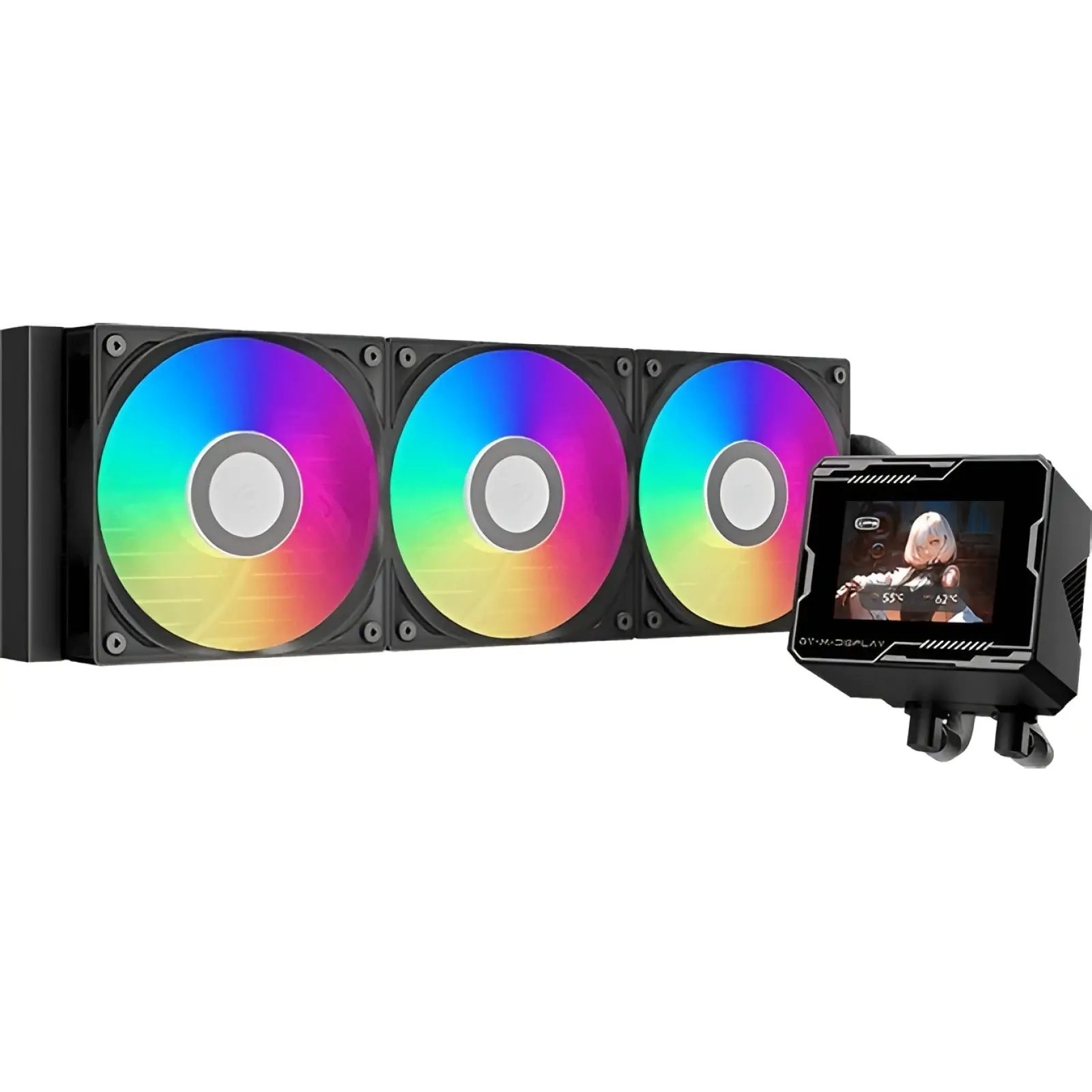 Корпус черного цвета с ARGB-подсветкой добавляет сборке ярких акцентов и современного вида. Встроенный дисплей ARGB делает охлаждение не просто функциональным, а стильным элементом вашего ПК, который гармонично сочетается с другими компонентами.