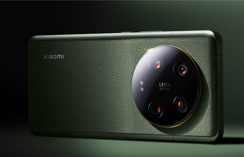 Xiaomi 13 Ultra имеет дизайн с модулем круглой формы камеры, похожим на объектив, металлической рамой и задней панелью с текстурой кожи черного и зеленого цвета.