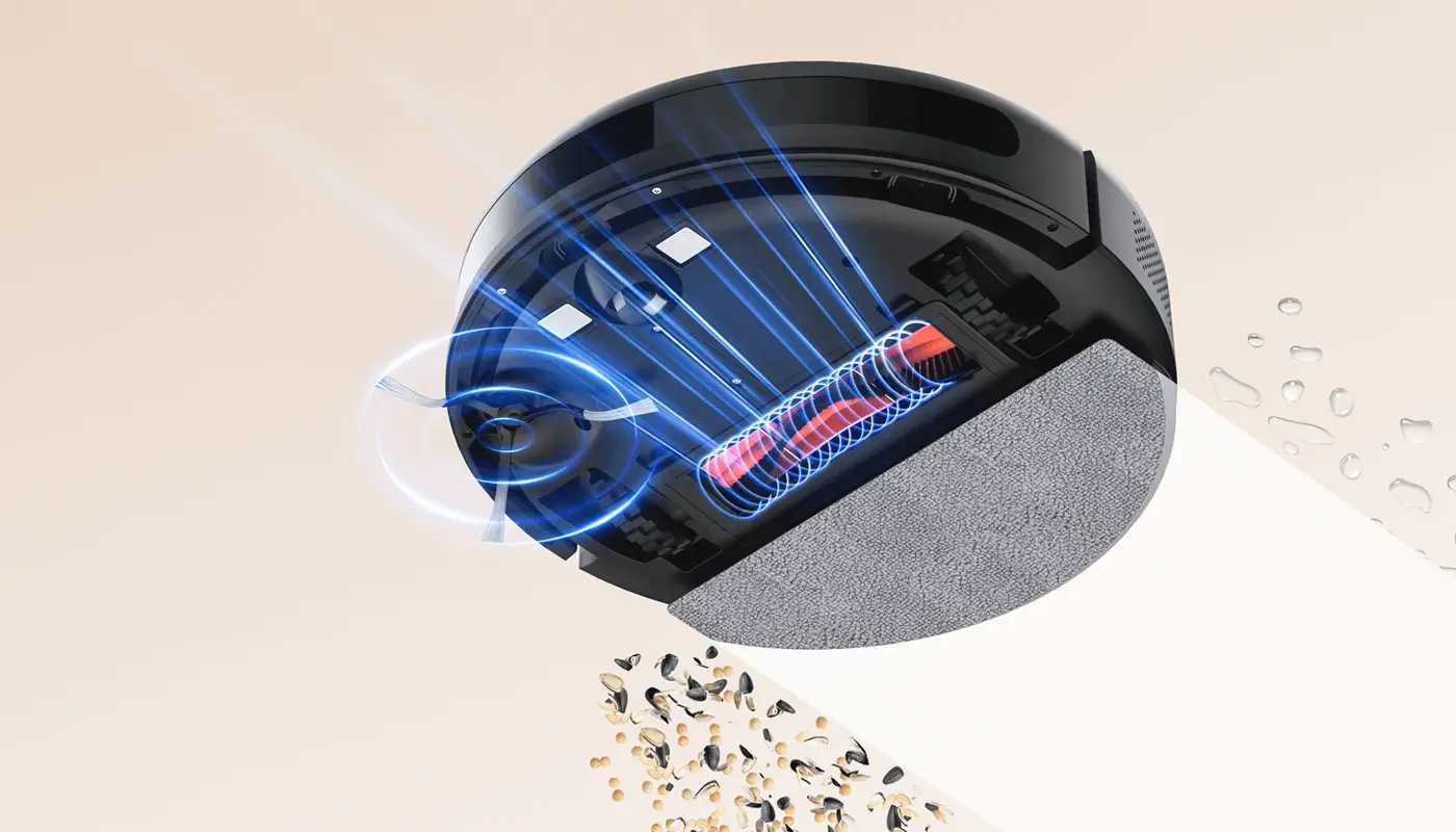 Высококачественные встроенные детали, включая боковую щетку, основную щетку и пылесборный фильтр с разнонаправленной координацией для полной и эффективной очистки.